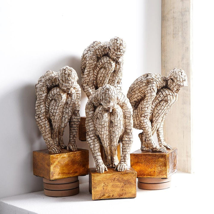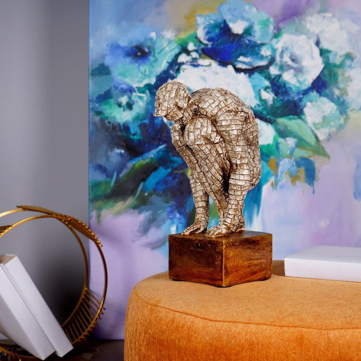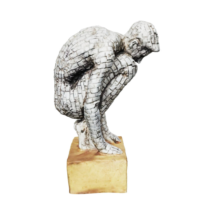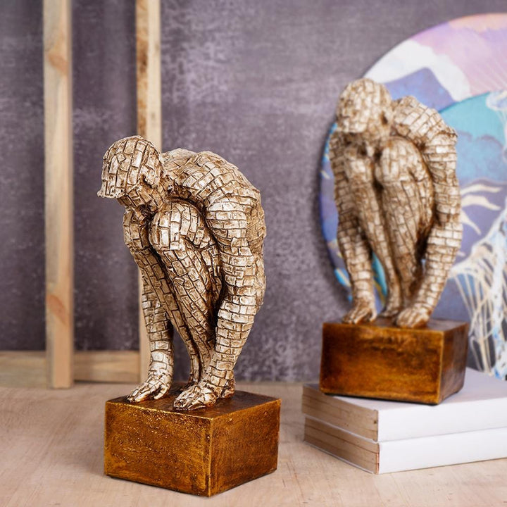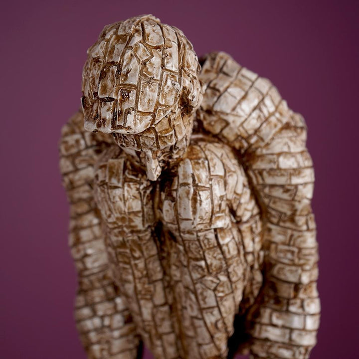 Abstract Contemplative Human Figure Sculpture - Textured Resin Art Showpiece for Modern Decor & Gifting