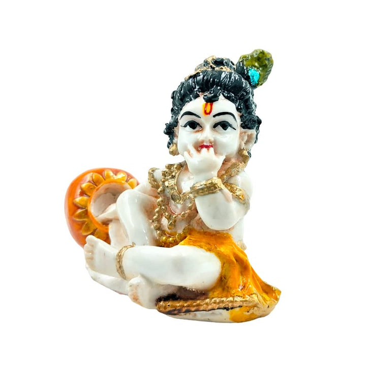 Adorable Bal Krishna Makhan Chor Idol | Resin Butter Thief Laddu Gopal Statue for Joy, Prosperity & Divine Home Decor