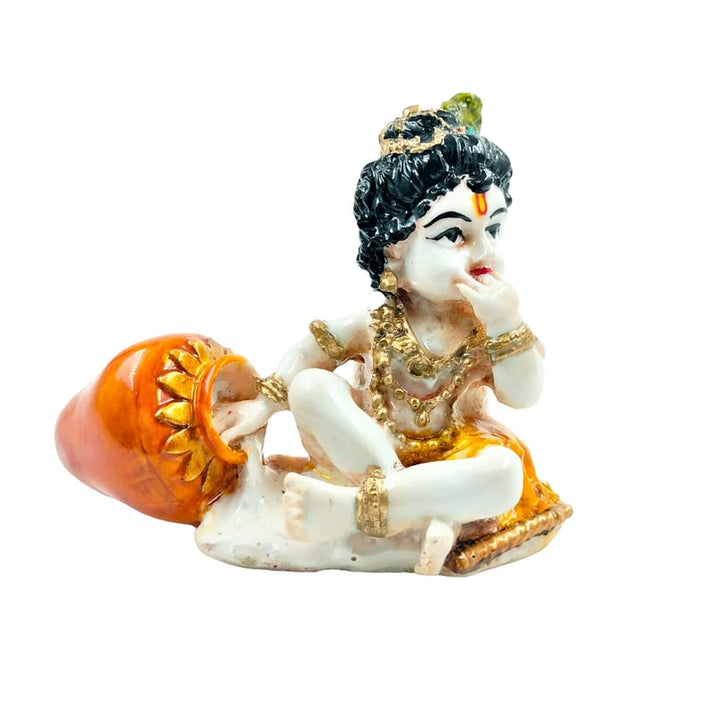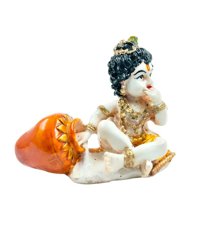 Short Description : Invite mischievous charm and abundant blessings with our adorable Resin Bal Krishna "Makhan Chor" Idol! Depicting Lord Krishna enjoying butter, this statue radiates joy, prosperity, and the sweet innocence of divinity, perfect for your home or as a delightful gift.