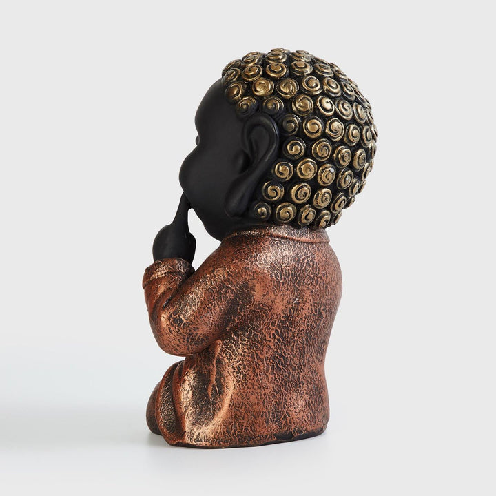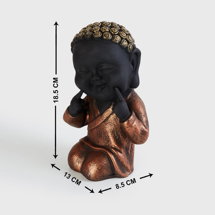 Short Description : Bring boundless joy and good fortune into your home with this delightful Laughing Buddha idol! Crafted from durable resin with a charming black and gold finish, it's a perfect decor accent or a heart warming gift.