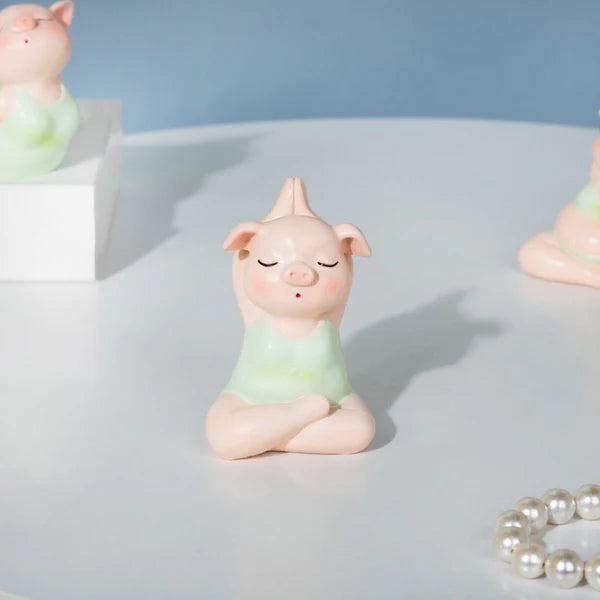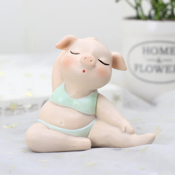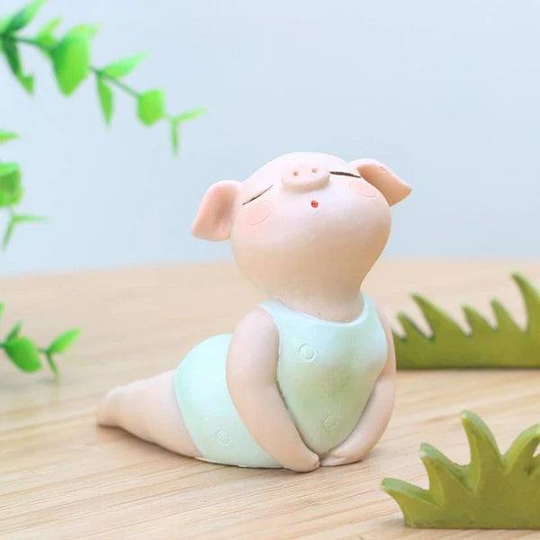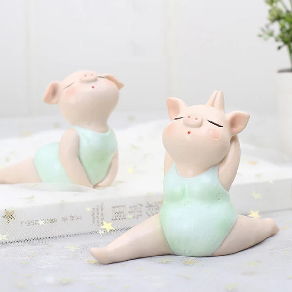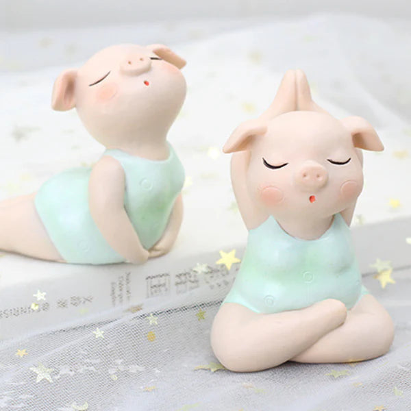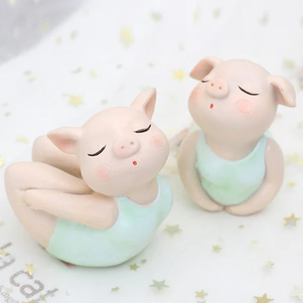 Adorable Yoga Pig Figurine Set | Polyresin Miniature Pigs for Whimsical Home Decor, Office Desk & Funny Gifting