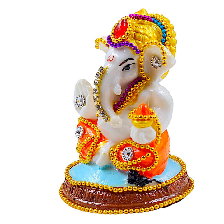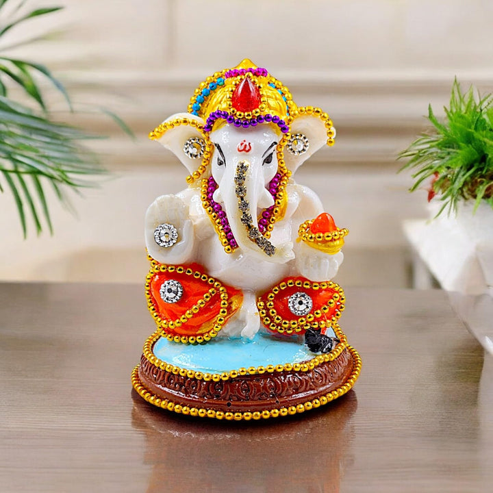 ✨Premium Resin Craftsmanship: Sculpted from high-quality, durable resin, this idol boasts intricate detailing and a refined finish, capturing the divine essence and traditional iconography of Ganpati Bappa with artistic precision.