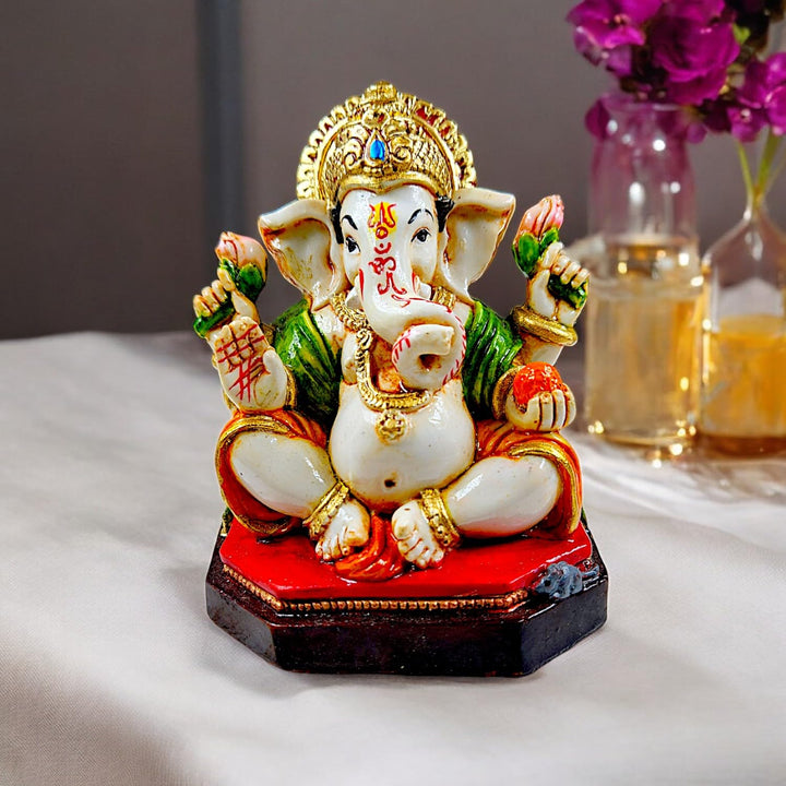 Auspicious Turban Ganesha Idol for Car Dashboard | Compact Resin Ganesh Statue for Safe Travels, Prosperity & Gifting
