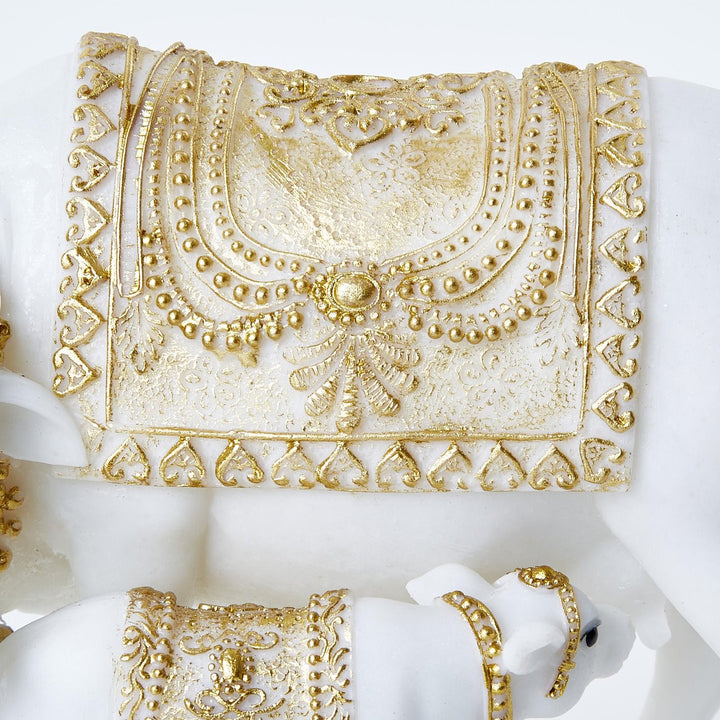 💖🙏 Elegant & Sacred Home Mandir / Pooja Room Decor: With its pristine white finish beautifully adorned with intricate golden details, this statue serves as a magnificent centerpiece for your altar, living room, or office, radiating purity and divine energy.