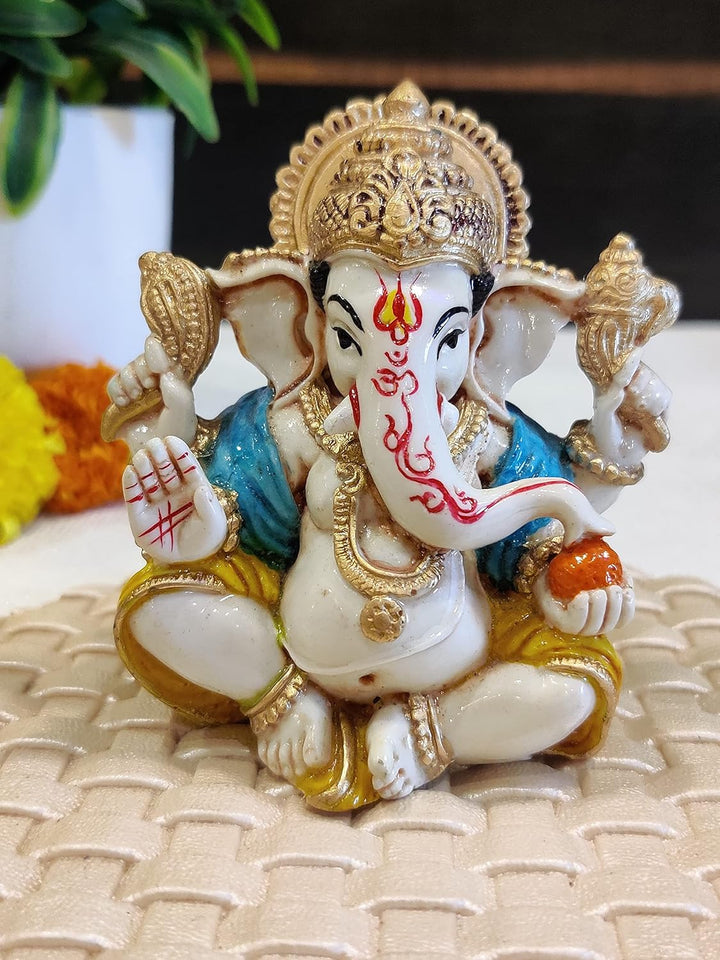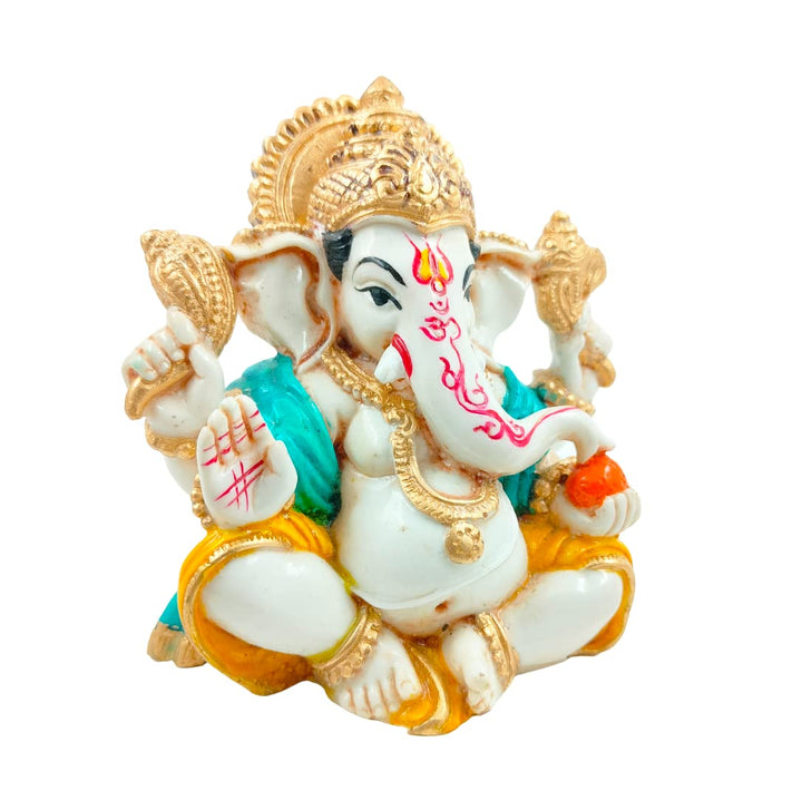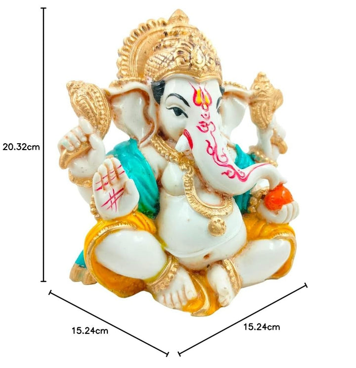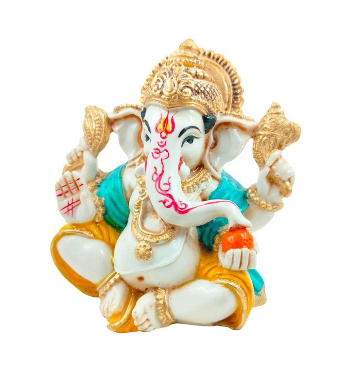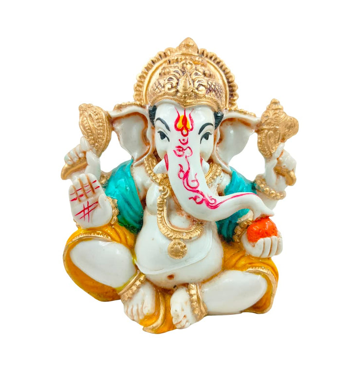 Short Description : Ensure safe journeys and positive vibes with our charming Polyresin Car Dashboard Ganesha Idol. Featuring a vibrant orange turban, this compact and auspicious statue brings Lord Ganesha's blessings for obstacle-free travels and good fortune wherever you go.