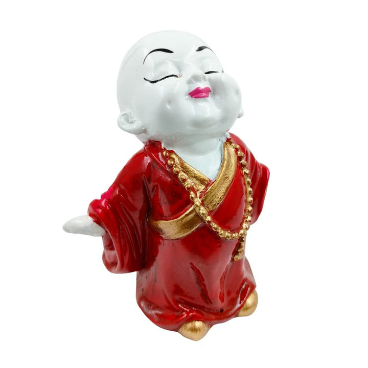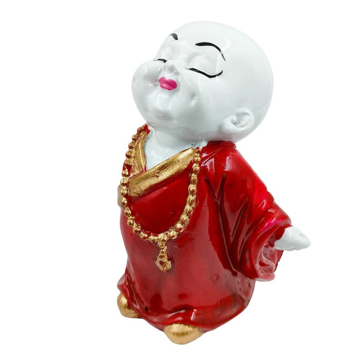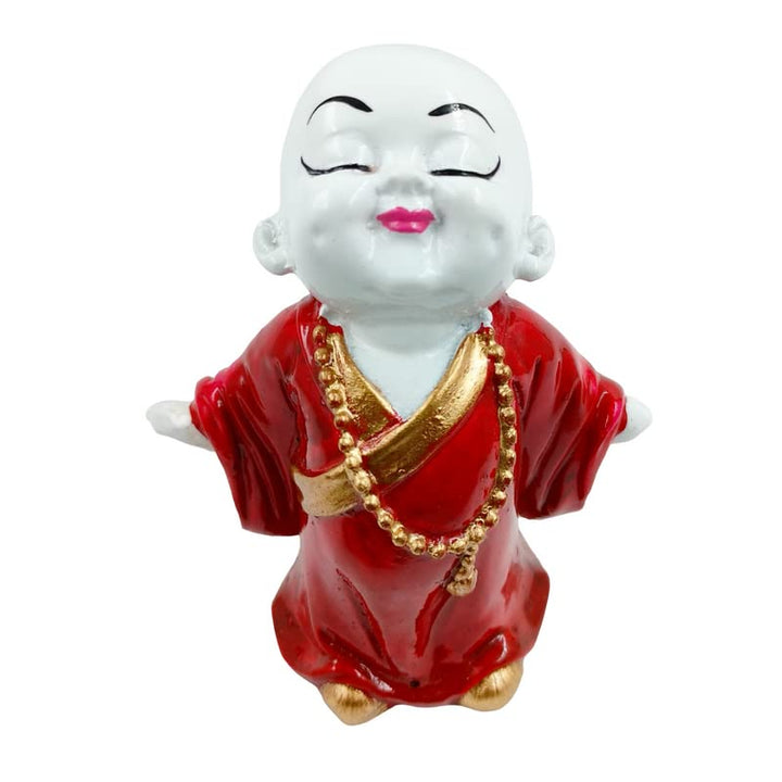 Charming Standing Red Baby Monk Buddha Idol | Polyresin Playful Showpiece for Joy, Good Fortune & Welcoming Home Decor