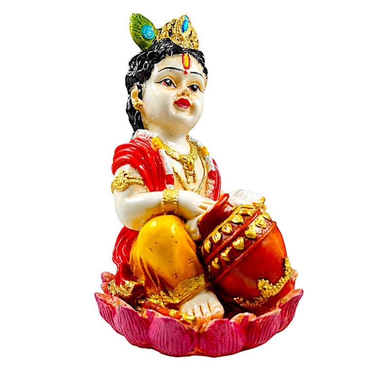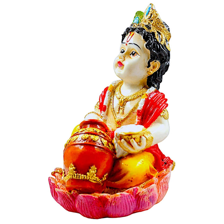 Divine Bal Krishna Makhan Chor Statue | Laddu Gopal on Lotus Base for Home Blessings, Joy & Gifting