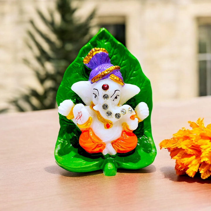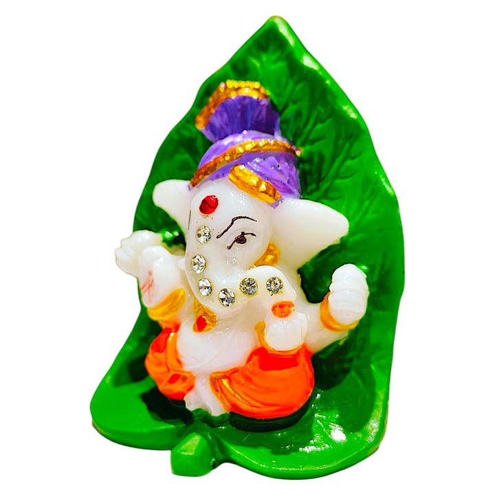 ✨ Vibrant & Auspicious Design: Features a charming, colorful Ganesha idol seated on a vibrant green leaf base, adding a pop of spiritual energy and aesthetic appeal to your vehicle's interior.