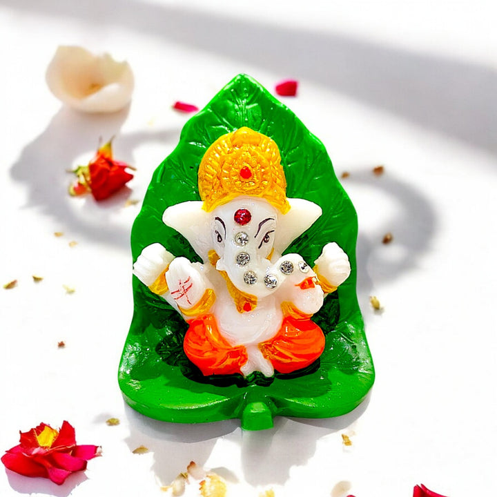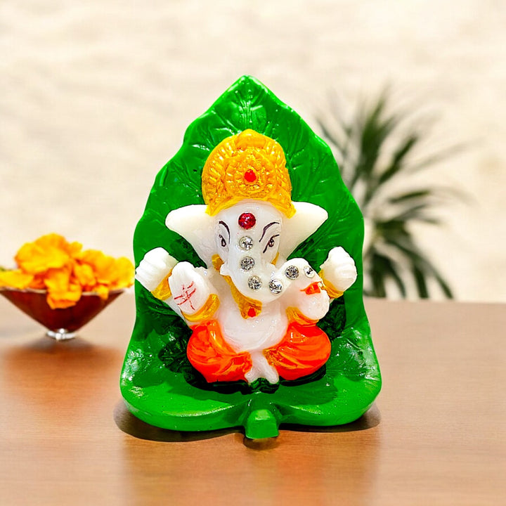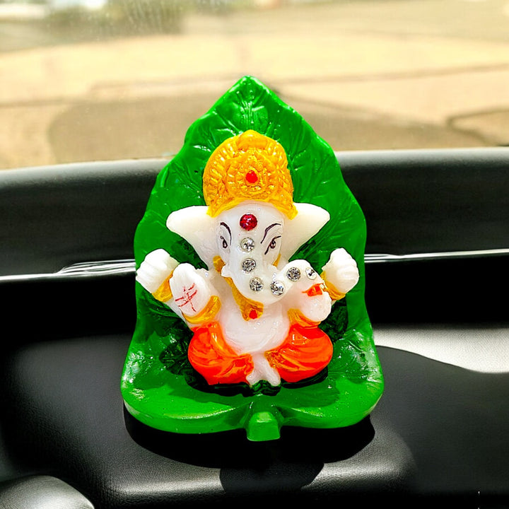 ✨ Vibrant & Auspicious Design: Features a charming, colorful Ganesha idol seated on a vibrant green leaf base, adding a pop of spiritual energy and aesthetic appeal to your vehicle's interior.