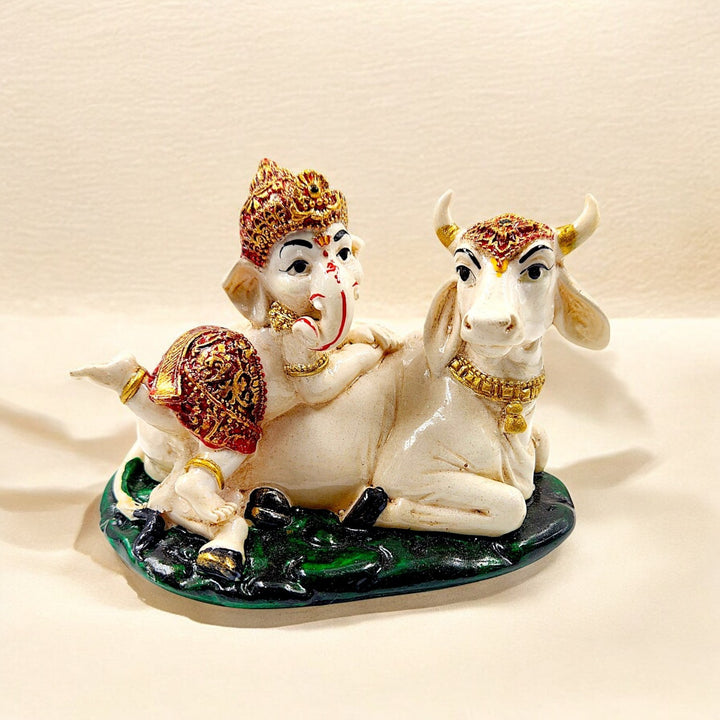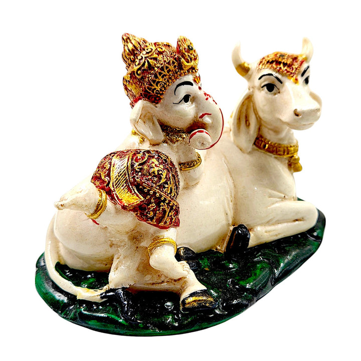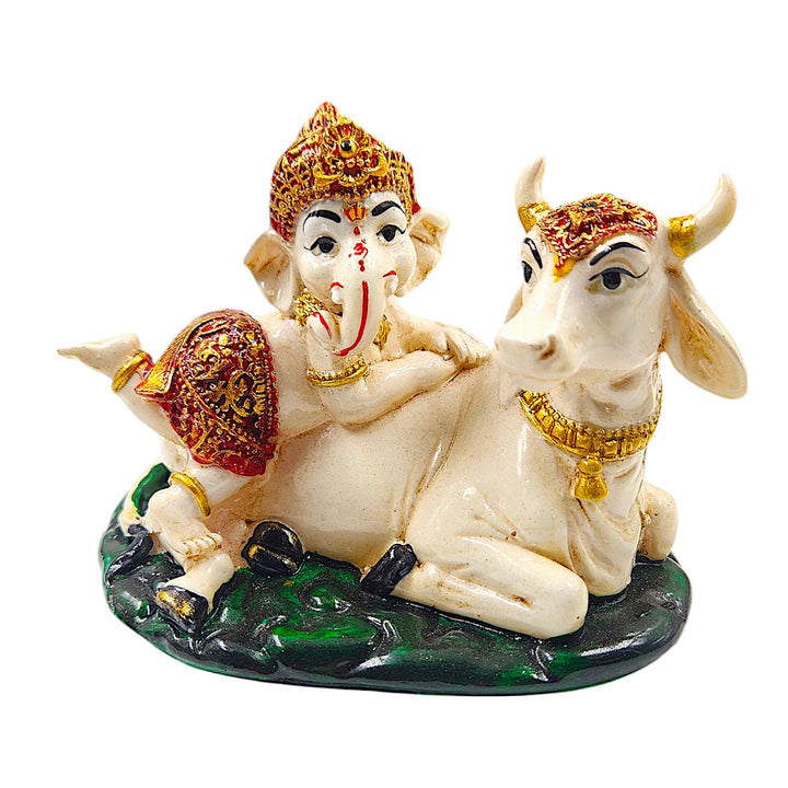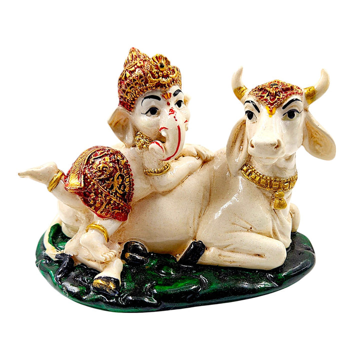 🎨 Intricate Hand-Painted Details: Meticulously crafted from high-quality resin with fine, hand-painted details on both Ganesha and the cow, showcasing exquisite artistry and vibrant colours.