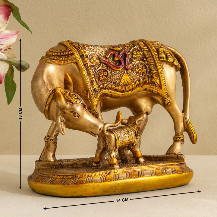 Divine Kamadhenu Cow & Calf Figurine | Polyresin Holy Cow Statue for Prosperity, Abundance, Vastu & Auspicious Home Decor Gift