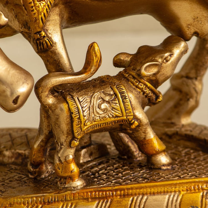 Short Description : Invite prosperity, abundance, and divine blessings with our Divine Kamadhenu Cow & Calf Figurine. Crafted from polyresin, this holy cow statue is perfect for Vastu-compliant home decor and makes an exceptionally auspicious spiritual gift.