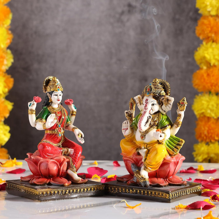 Divine Lakshmi & Ganesha Idol Set - Auspicious Resin Statues for Wealth, Prosperity & Home Blessings