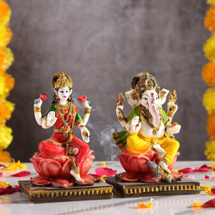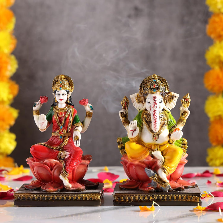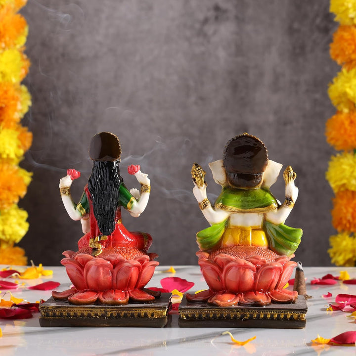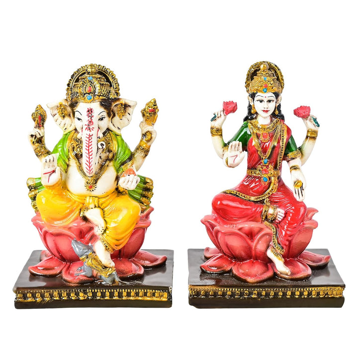Short Description : Invite wealth, wisdom, and good fortune with this beautiful Lakshmi and Ganesha idol set. Crafted from detailed resin with vibrant colors, this duo is perfect for your home puja, festive decor, or as a deeply auspicious gift.