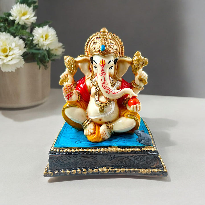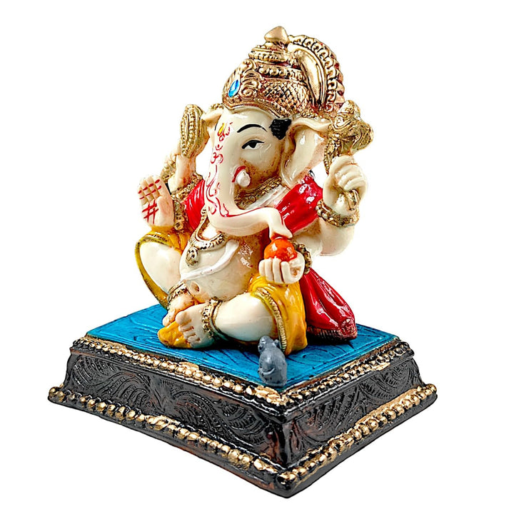 Divine Lord Ganesha Idol on Ornate Base | Resin Ganesh Murti with Modak & Mushak | Auspicious Home & Office Decor | Good Luck & Prosperity Gift