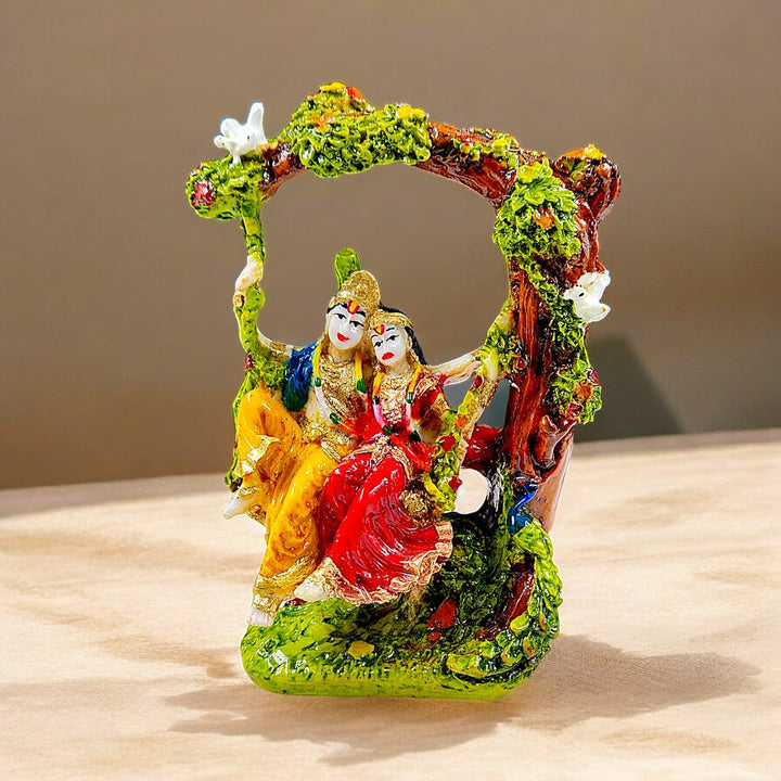 Divine Radha Krishna Swing Statue | Vibrant Resin Idol for Love, Harmony, Home Decor & Spiritual Gifting