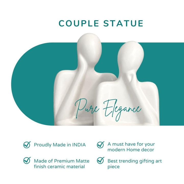Elegant Abstract Couple Statue | White Resin Modern Art Figurine for Love, Serenity & Thoughtful Gifting