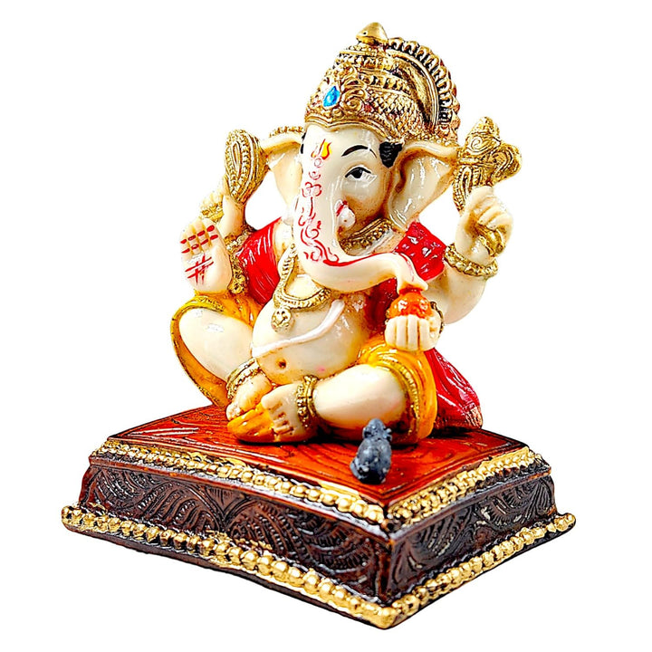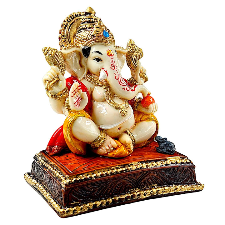Elegant Lord Ganesha Idol | White & Gold Resin Statue for Prosperity, Obstacle Removal & Divine Blessings