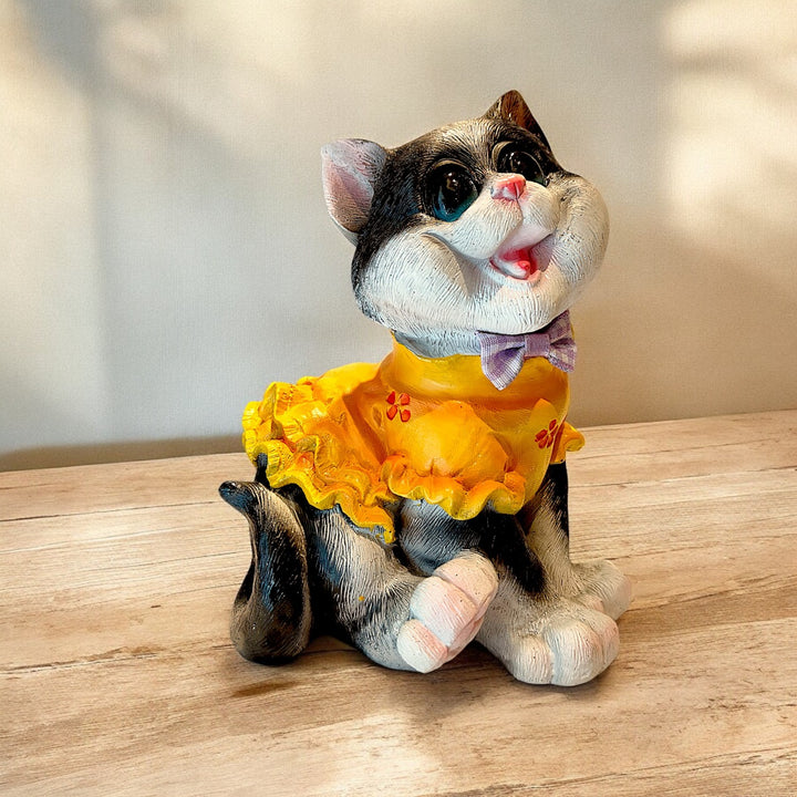 Elegant Resin Cat Figurine | Cute Home Decor Showpiece for Living Room, Bedroom & Office | Artistic Cat Statue for Gifting & Interior Decoration