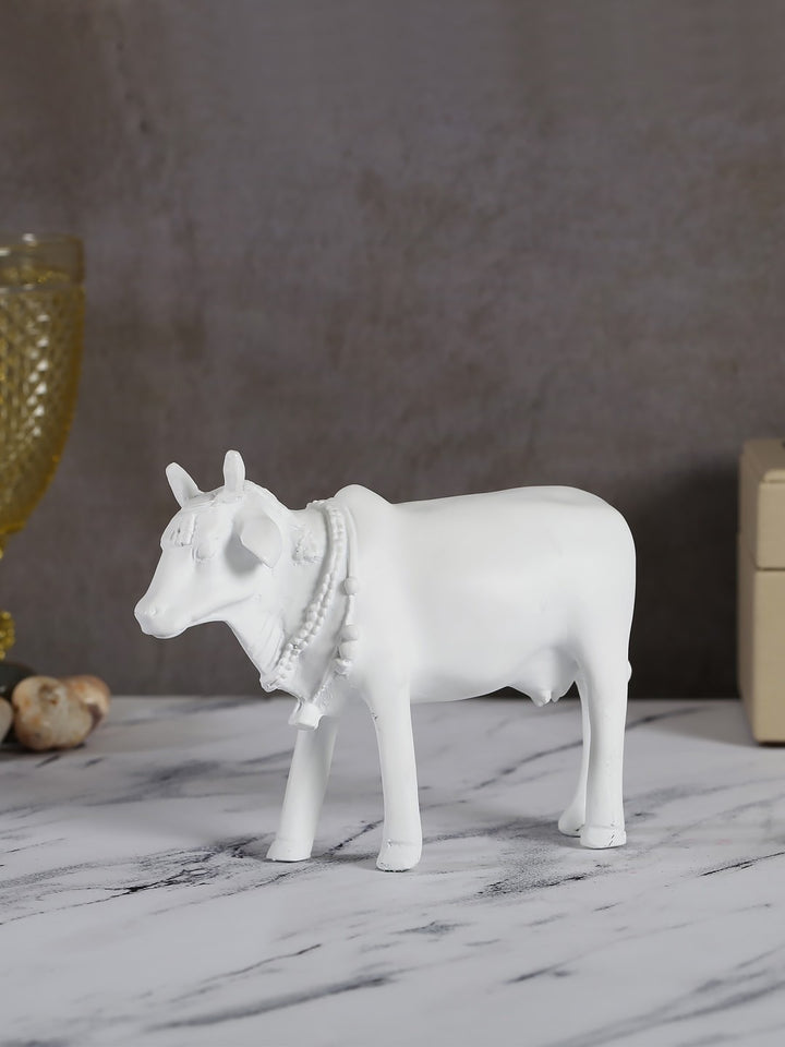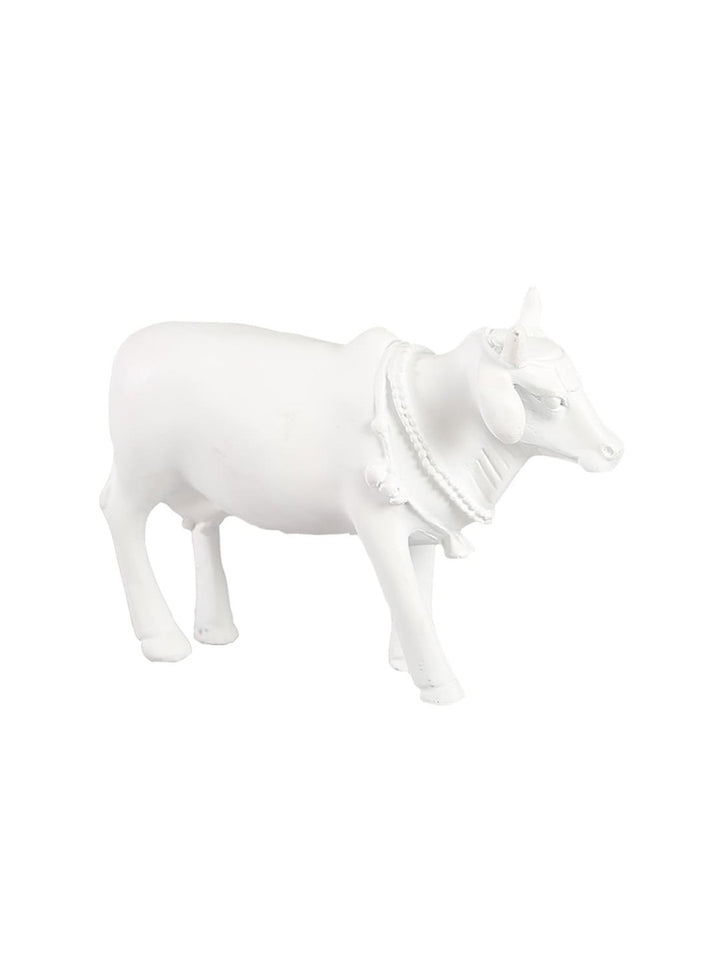 Elegant Resin Cow Figurine | Sacred Nandi Bull Showpiece for Home & Office Decor | Spiritual & Traditional Gifting Idol