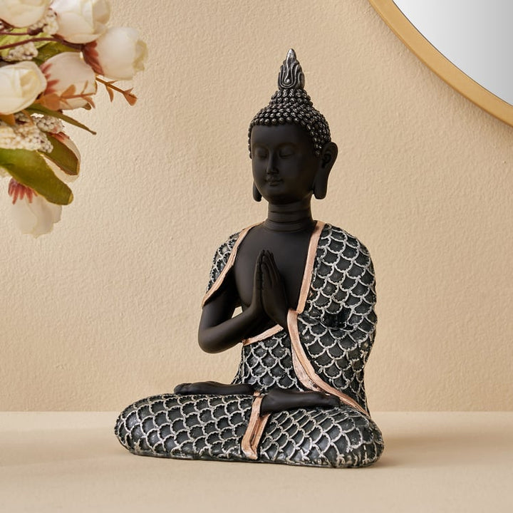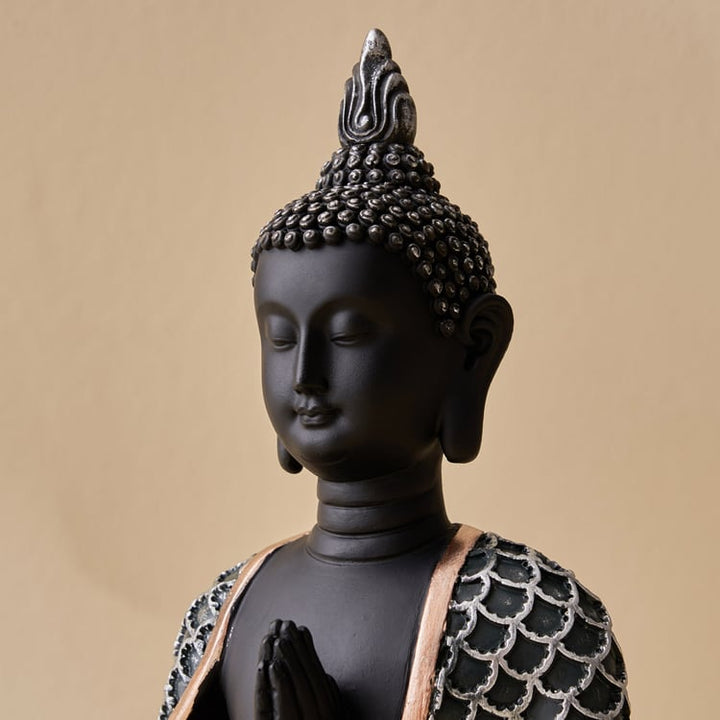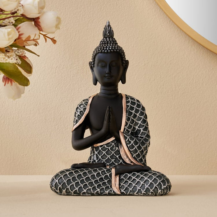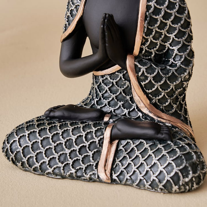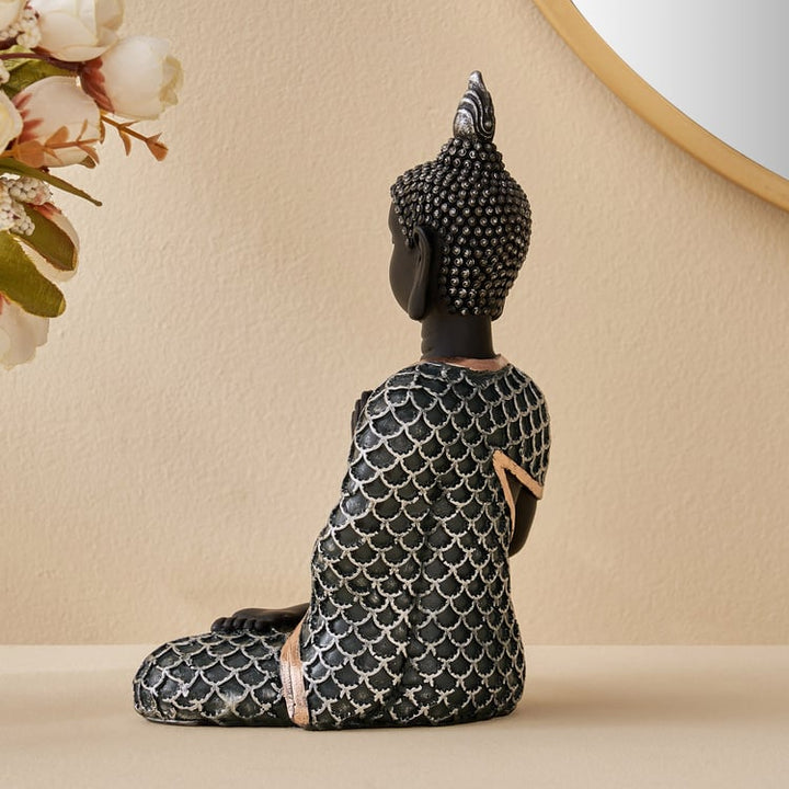 Exquisite Meditating Buddha Statue for Inner Peace & Serenity | Premium Black & Textured Silver/Bronze Resin Figurine for Zen Home Decor, Yoga Studio & Calming Spiritual Gift