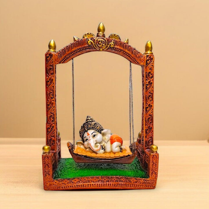 Ganesha on Swing Showpiece β Resin Decorative Idol with Tree & Frame for Home Decor & Gifting
