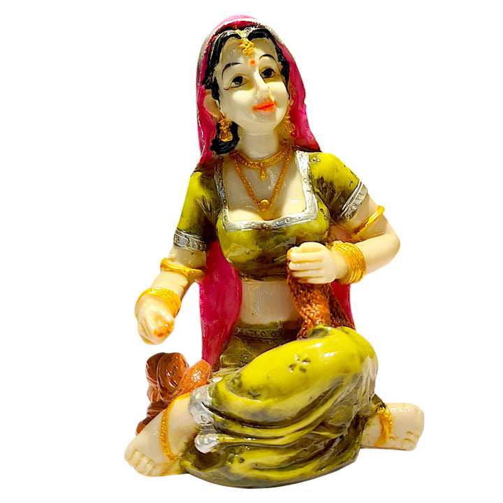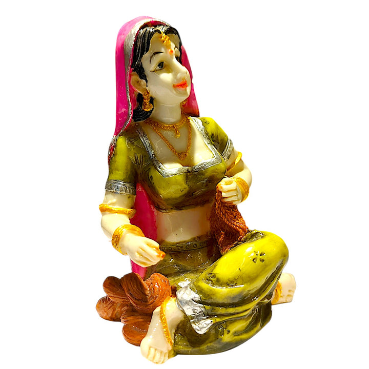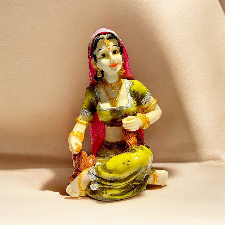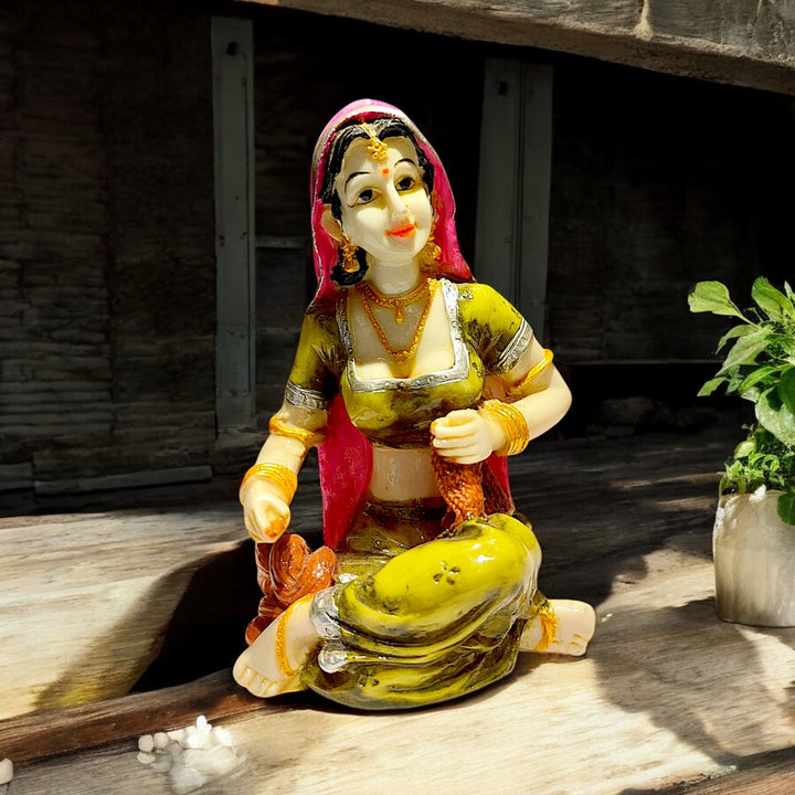 Handcrafted Rajasthani Woman Figurine | Traditional Resin Lady Idol for Home Decor | Ethnic Indian Showpiece for Tabletop, Shelf & Gifting