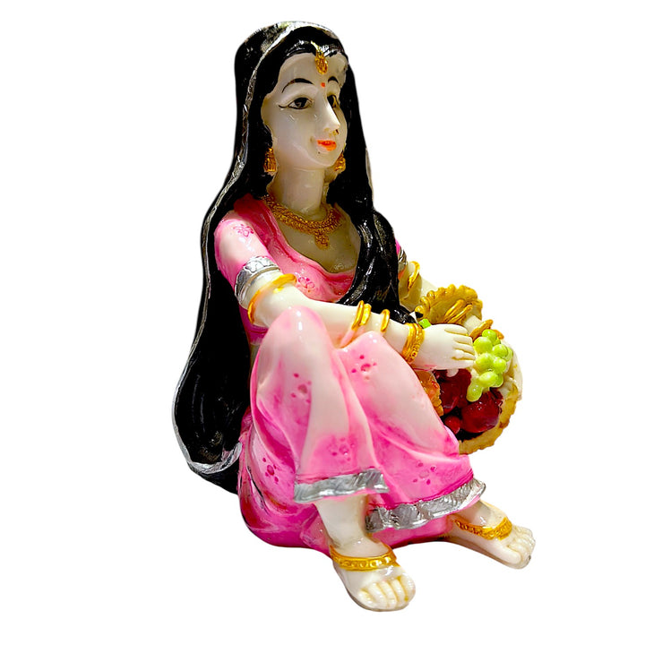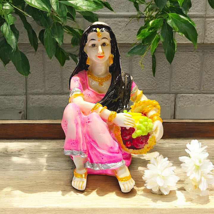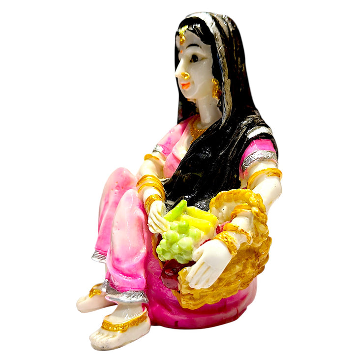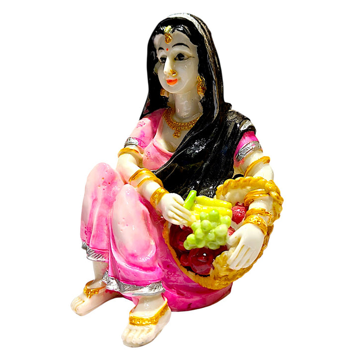 Handcrafted Rajasthani Woman with Fruit Basket Figurine | Resin Traditional Lady Showpiece for Home Decor | Ethnic Indian Figurine for Gifting & Tabletop Display