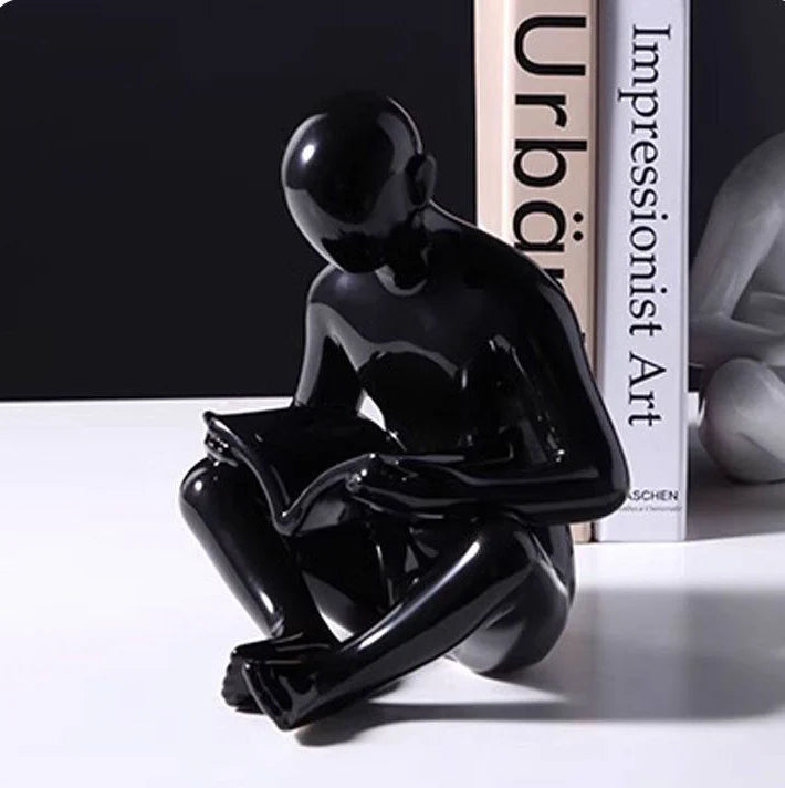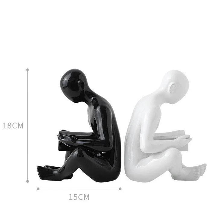 Short Description : Stylish abstract reading figurines in black and white resin, perfect for bookshelf or study décor. A meaningful gift for readers, writers, students, and modern art lovers.