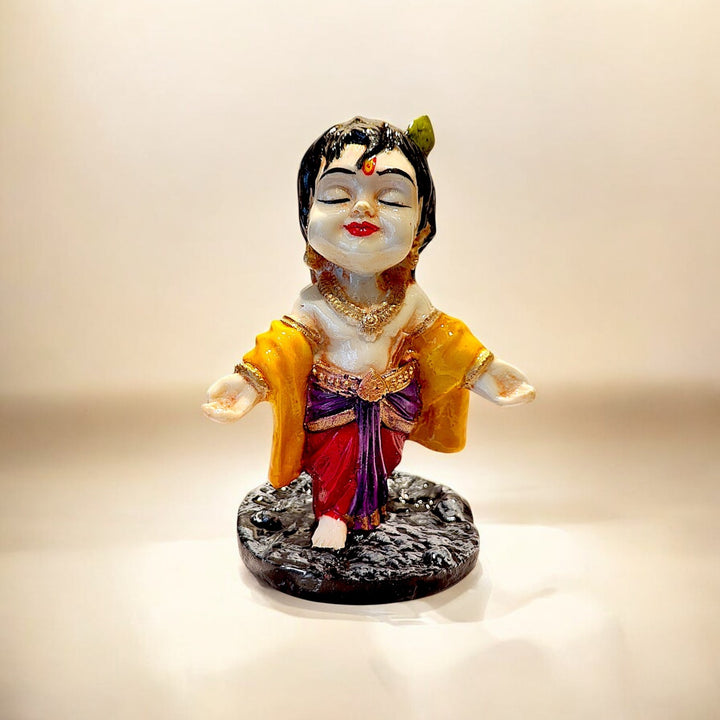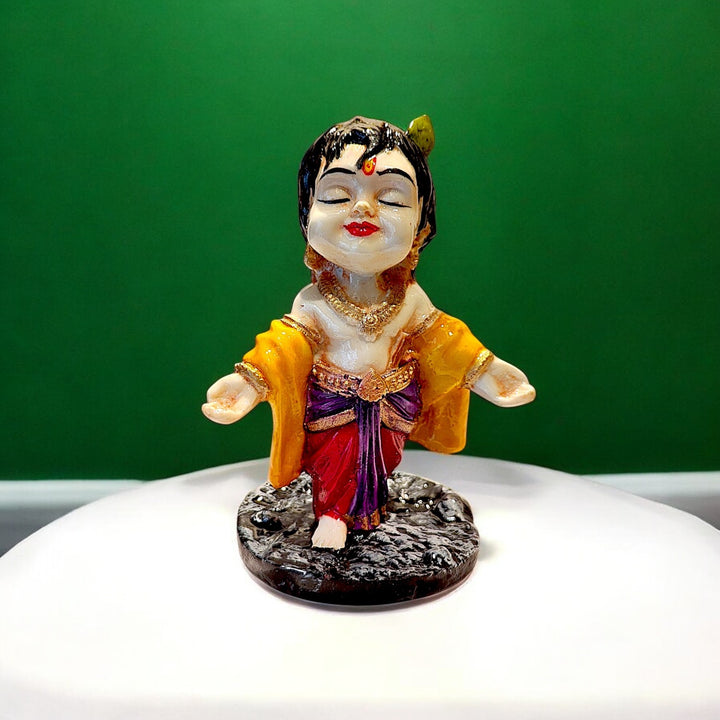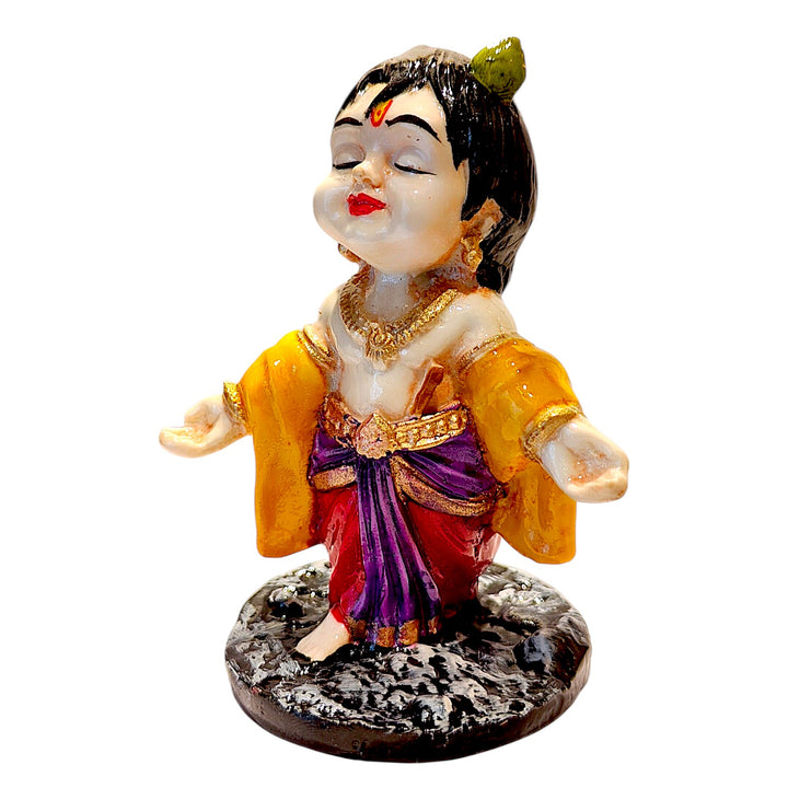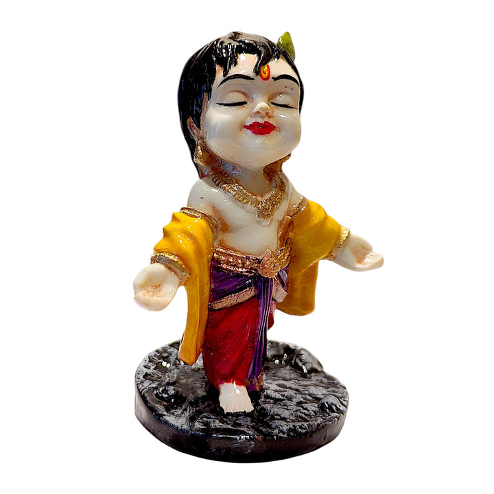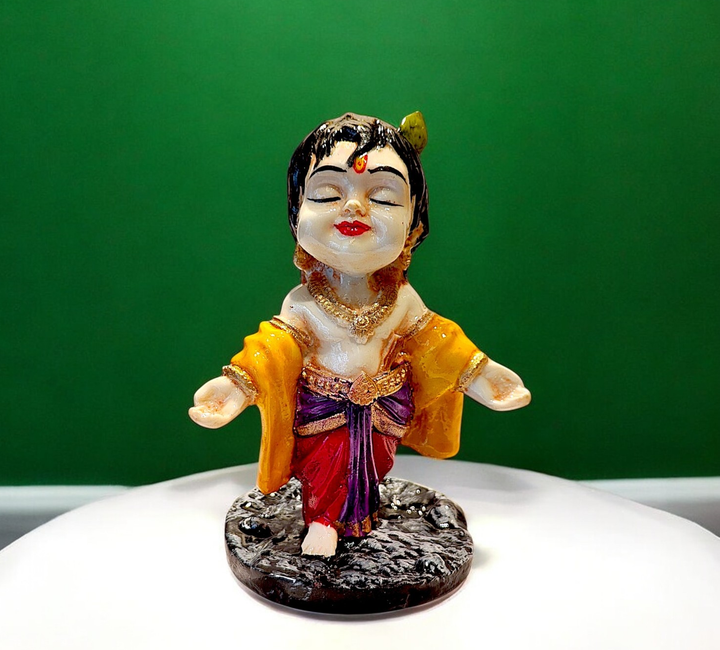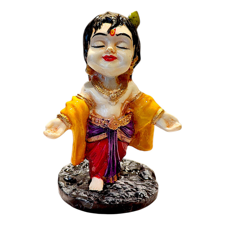 Short Description : Add charm and positivity with this adorable Bal Krishna Idol, crafted in premium resin, perfect for car dashboards, home décor, pooja mandirs, and festive gifting.