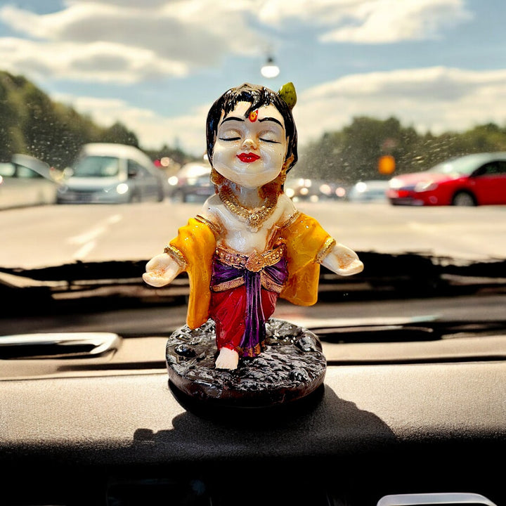Karigaari India Cute Little Krishna Idol for Car Dashboard & Home Décor | Premium Resin Bal Gopal Figurine for Pooja, Temple & Spiritual Gifting