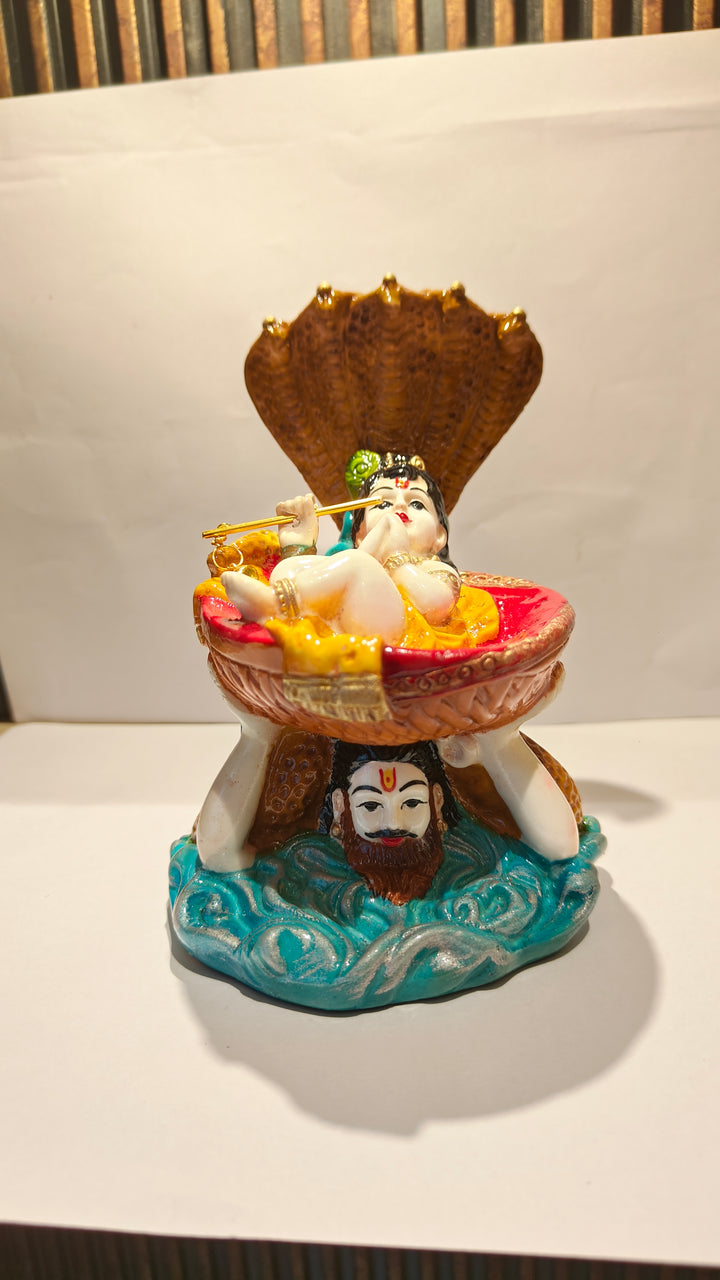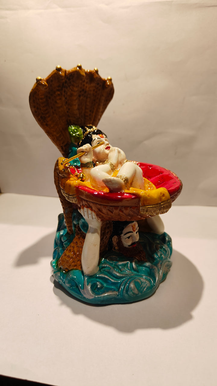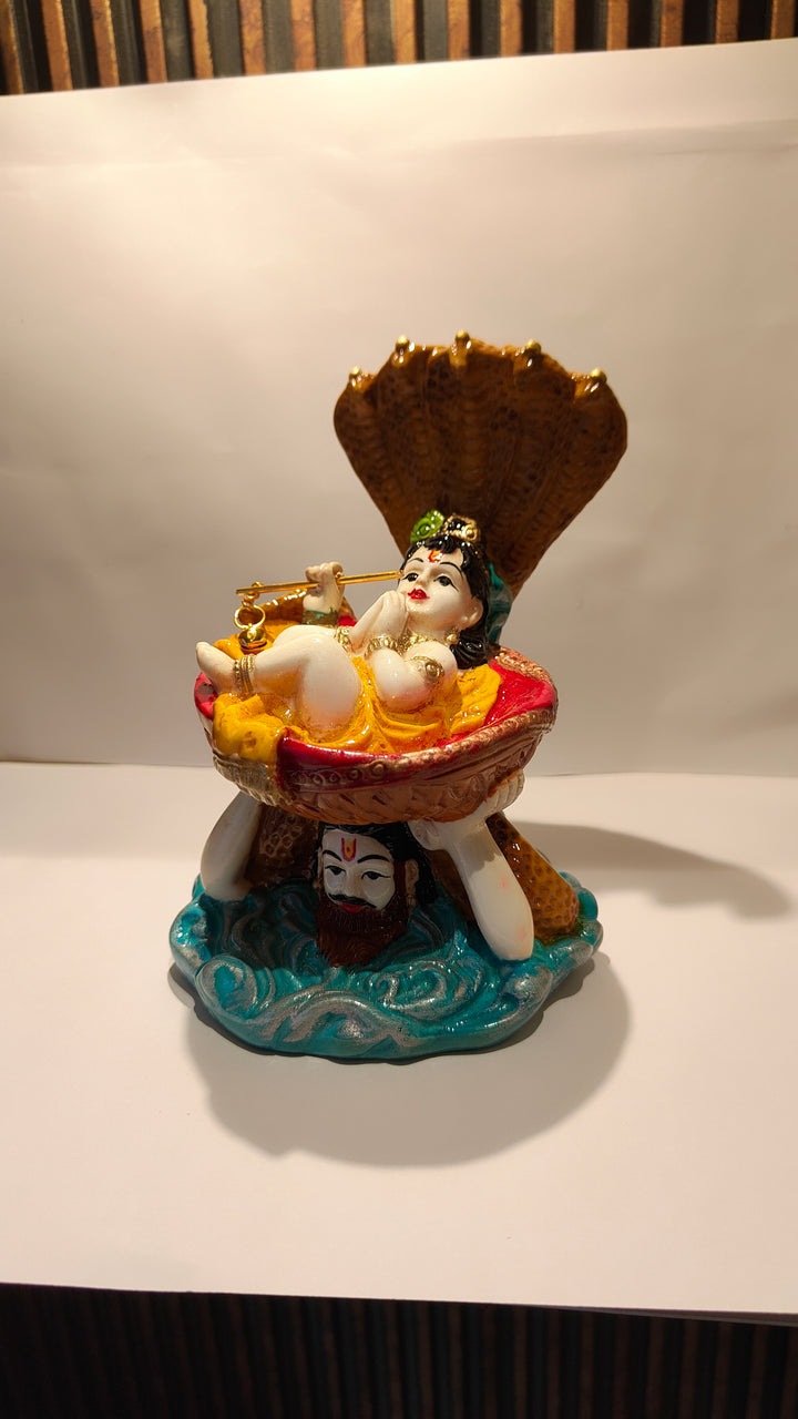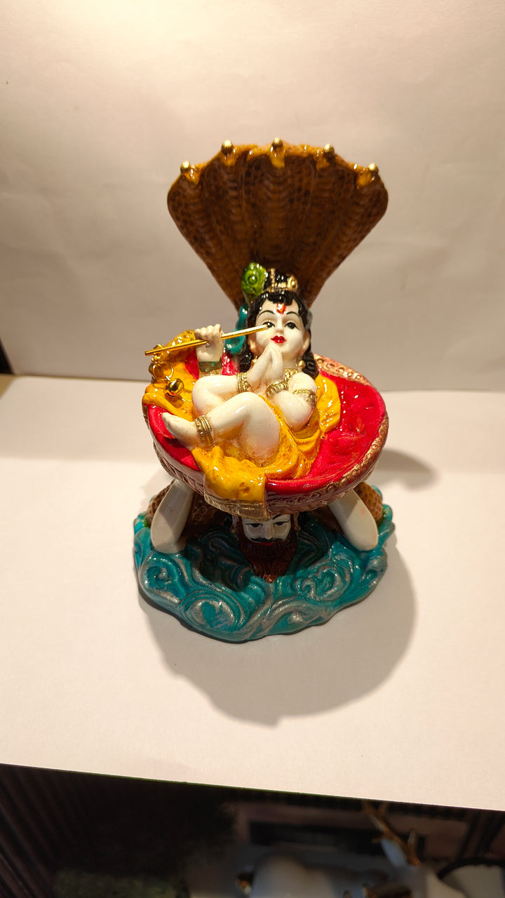 Short Description : Add divine grace to your home with this Lord Vishnu idol in Anant Shayan pose inside a decorative conch shell, beautifully crafted from premium resin. Perfect for pooja mandirs, spiritual décor, and gifting on auspicious occasions.
