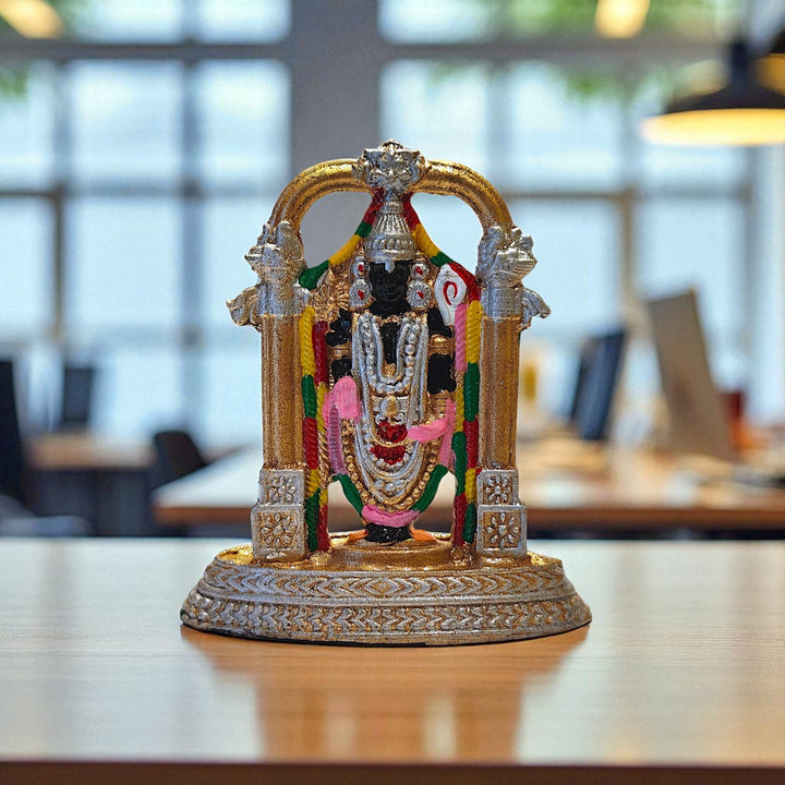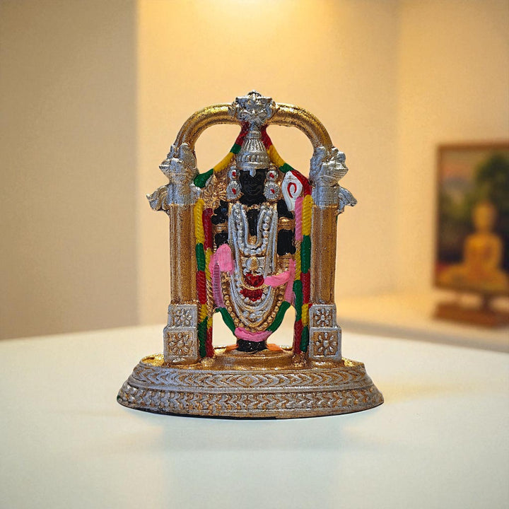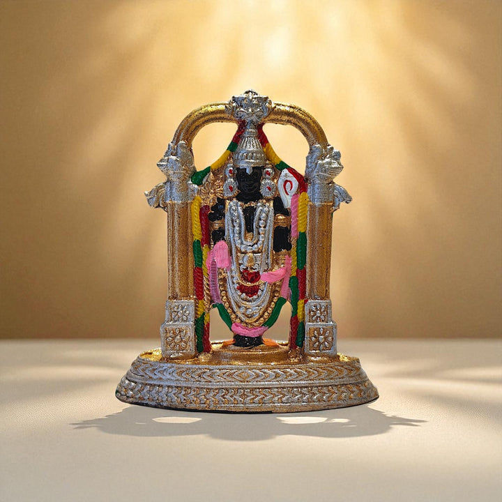 Short Description : Invite divine blessings and prosperity with this exquisitely crafted Tirupati Balaji Idol made of premium resin, ideal for home temple décor, spiritual corners, and auspicious gifting.