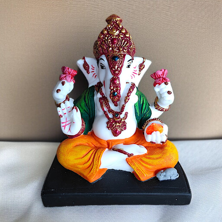 Short Description : Celebrate tradition and spirituality with the Karigaari India Resin Ganesha Figurine — a perfect blend of craftsmanship, symbolism, and vibrant colours . This beautifully handcrafted Ganpati idol brings positivity, wisdom, and prosperity into your home or workspace.