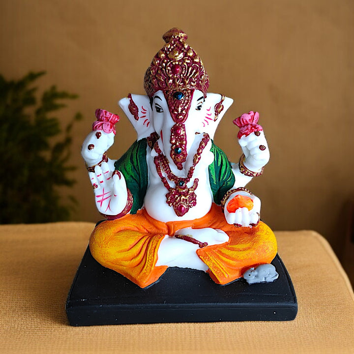 Karigaari India Resin Ganesha Figurine Idol | Handcrafted Lord Ganesha Statue for Home & Office Decor | Spiritual Ganpati Showpiece | Festival Gift & Housewarming