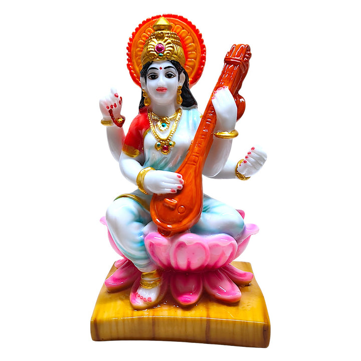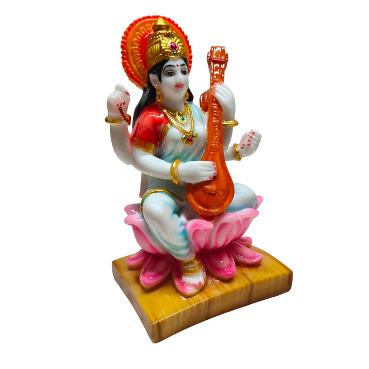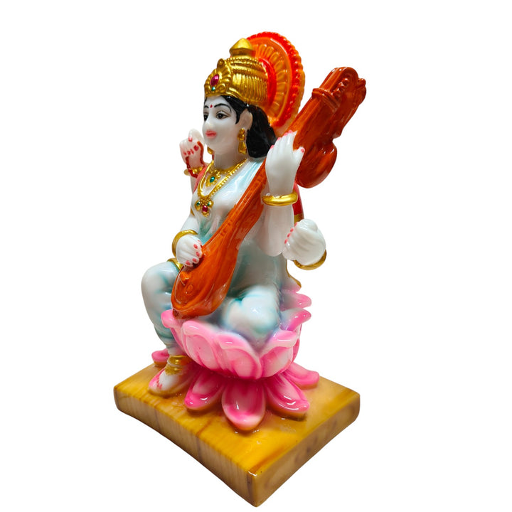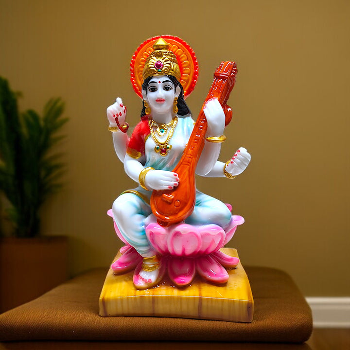 🎨 Exquisite Handcrafted Art: Each figurine is carefully sculpted to reflect Goddess Saraswati’s serene posture, musical instrument, and intricate details, showcasing traditional artistry.