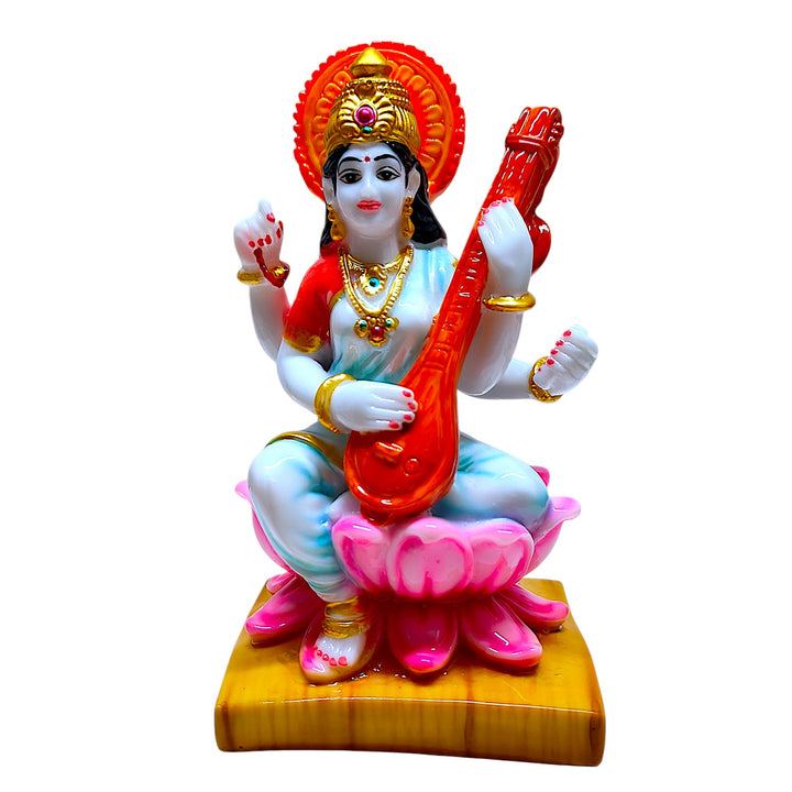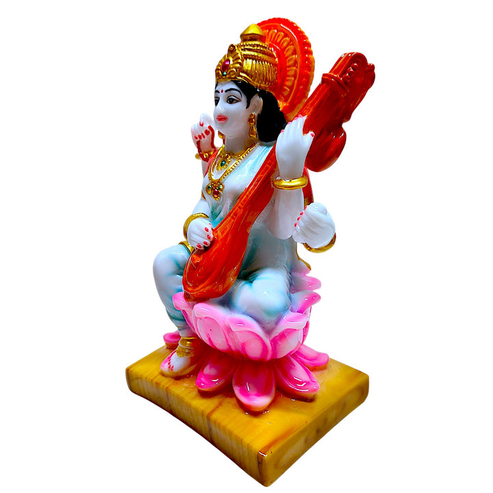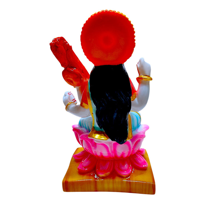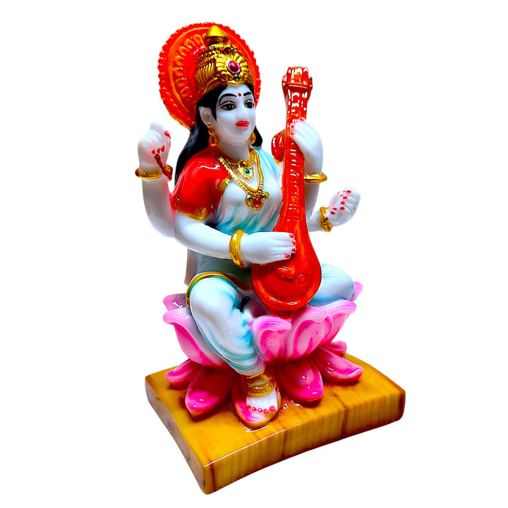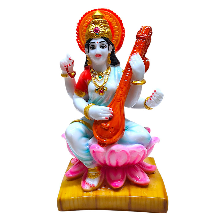 Expertly handcrafted from durable resin, with fine detailing and bright colours that bring Saraswati Maa to life.