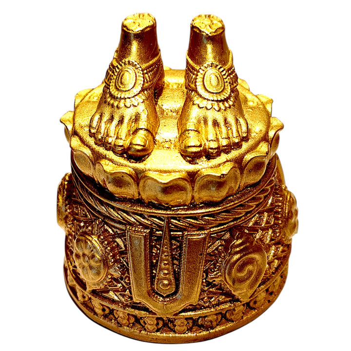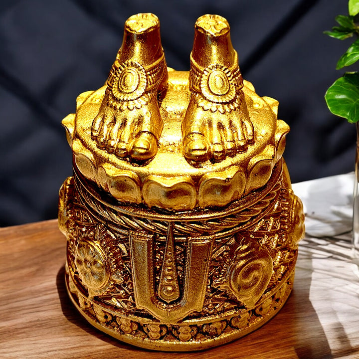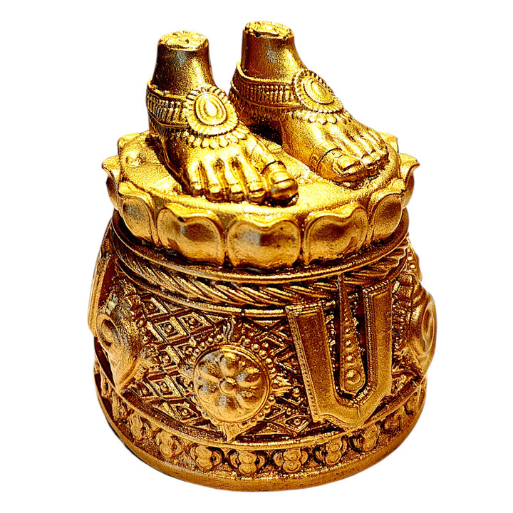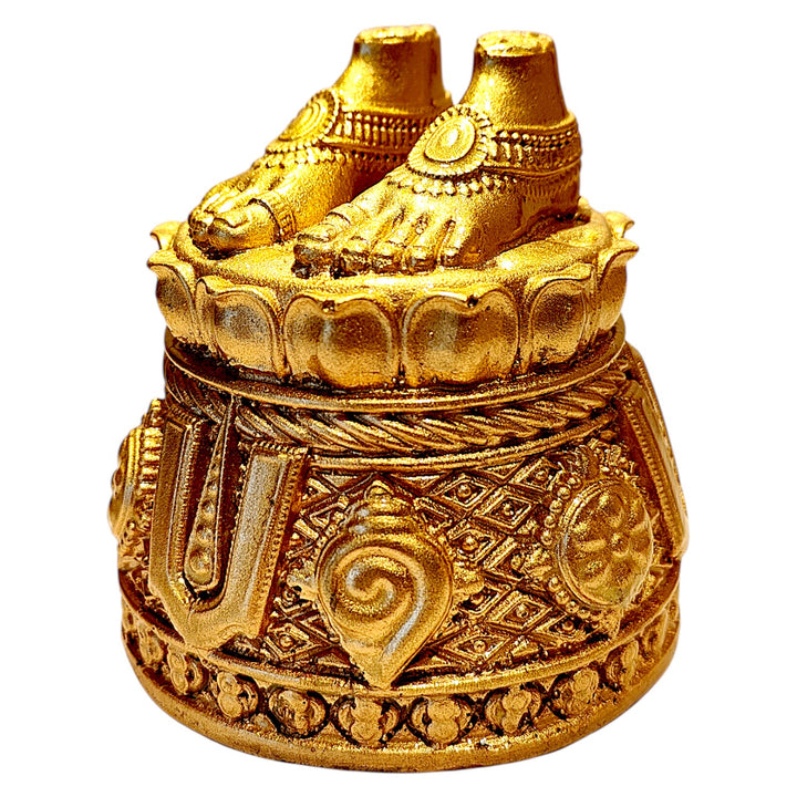 Short Description : Invite wealth, blessings, and divine protection into your home with this beautifully designed Laxmi Charan Paduka Box Figurine .Made from premium-quality resin, this elegant idol represents the footprints (Charan Paduka) of Goddess Lakshmi, symbolizing prosperity, purity, and spiritual blessings . The attached decorative box adds a practical and artistic element, perfect for storing sacred items or small treasures.Whether used in your home temple, as a centerpiece, or gifted to loved ones, this figurine beautifully blends spirituality with functionality and style.