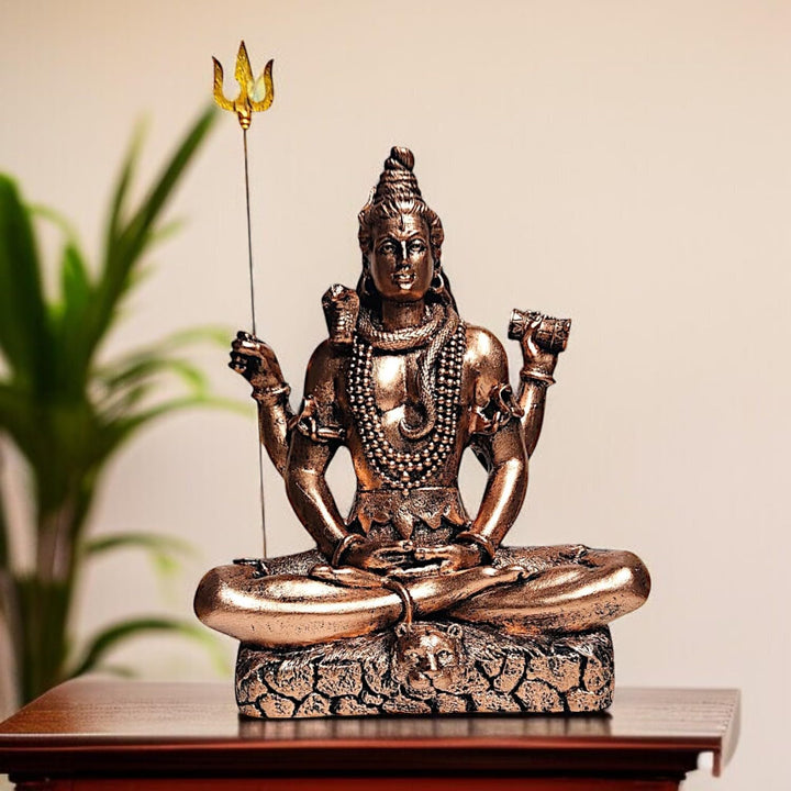 Short Description : Bring the divine energy of Lord Shiva into your space with this finely crafted resin figurine. Designed in a meditative pose with rich bronze tones, it adds both peace and power to your decor.