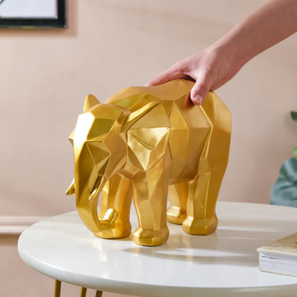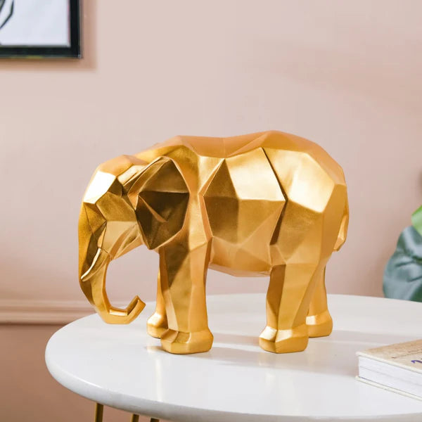 🐘✨ Modern Geometric Golden Elephant Figurine: Attract good fortune and elegance with this captivating Polyresin elephant statue featuring a unique faceted design.