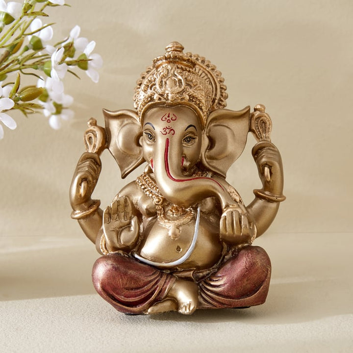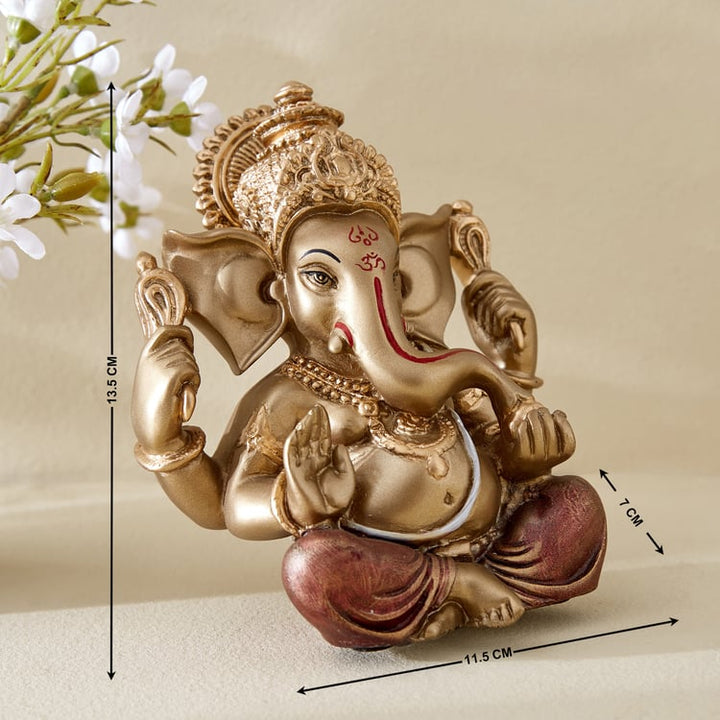 Modern Meditating Ganesha Figurine | Polyresin Gold & Red Abstract Ganesh Statue for Zen Decor, Wisdom, Prosperity & Unique Home Gift