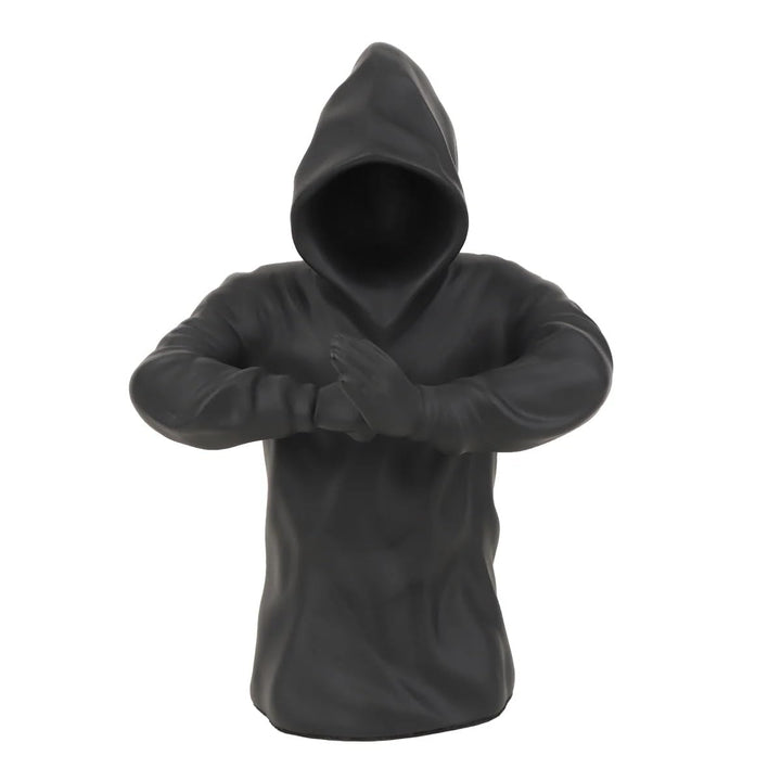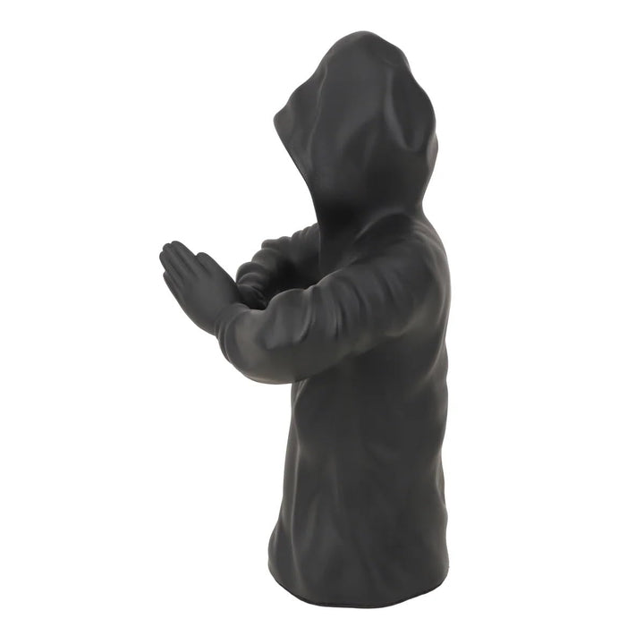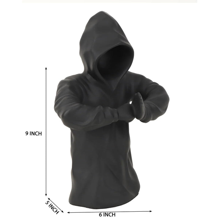 Mysterious Black Resin Hooded Faceless Man Statue | Modern Abstract Sculpture for Home Decor, Office & Unique Gifting