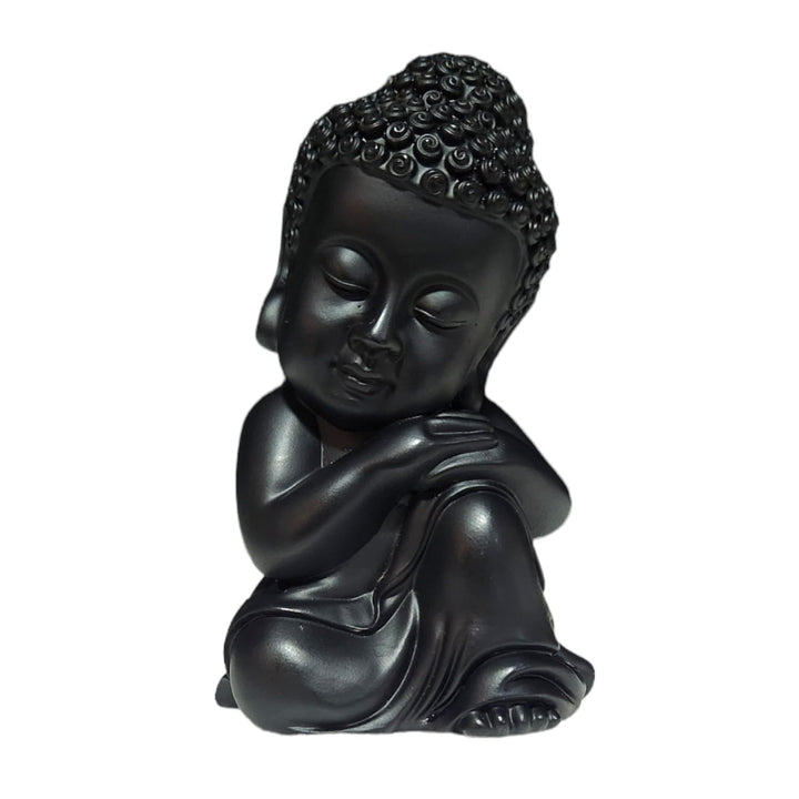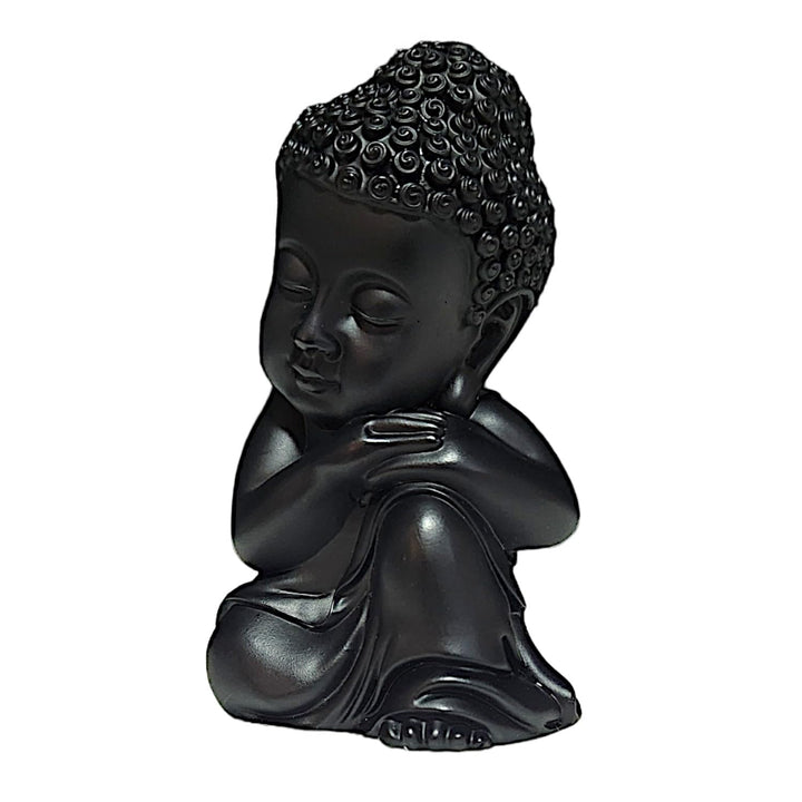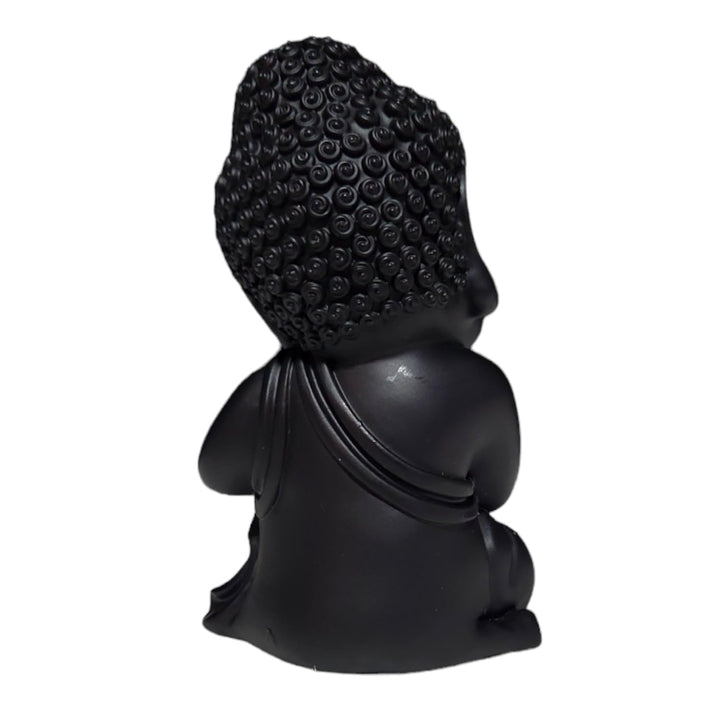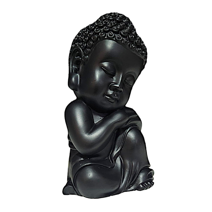 Short Description : Cultivate calm with this adorable meditating Little Buddha Monk statue. Crafted from serene black resin, its tranquil pose brings peace and mindfulness, perfect for home decor or a thoughtful spiritual gift.