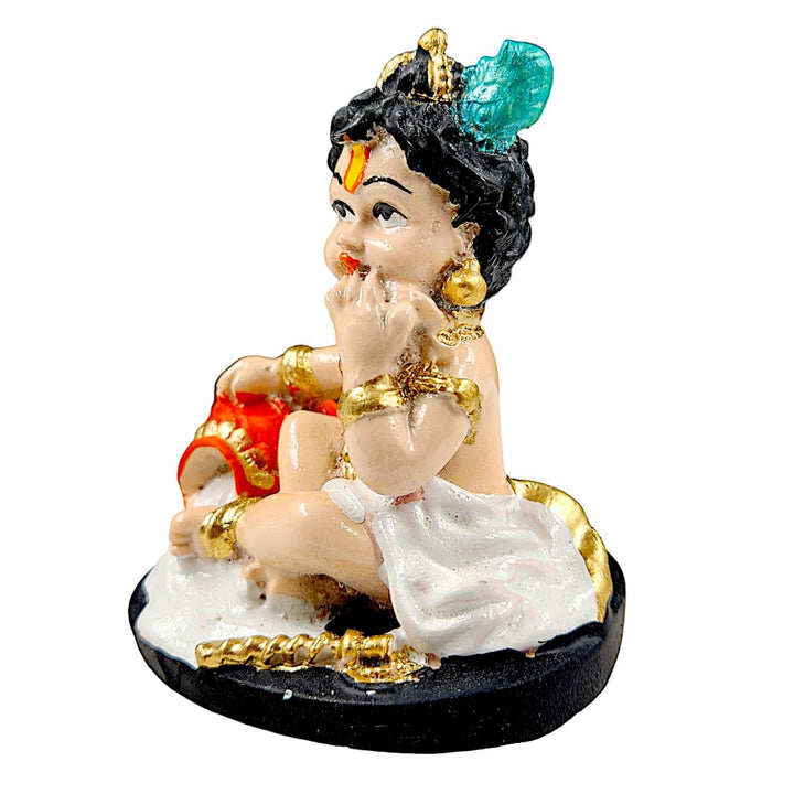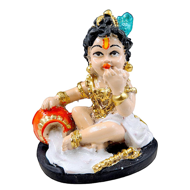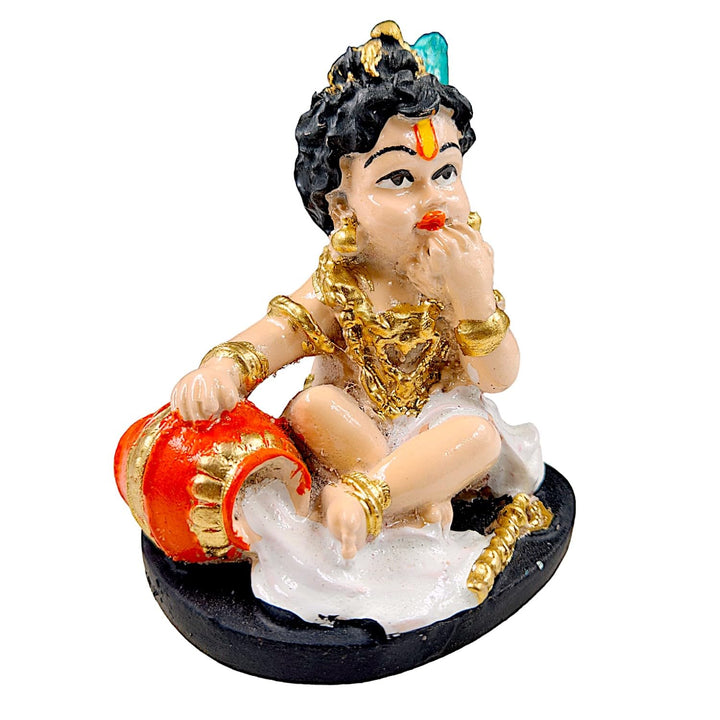 🌈✨Vibrantly Hand-Painted Resin: Meticulously crafted from high-quality, durable resin and adorned with rich, hand-painted colours, highlighting every intricate detail, from Krishna's expressive features to his playful posture and the pot of butter.
