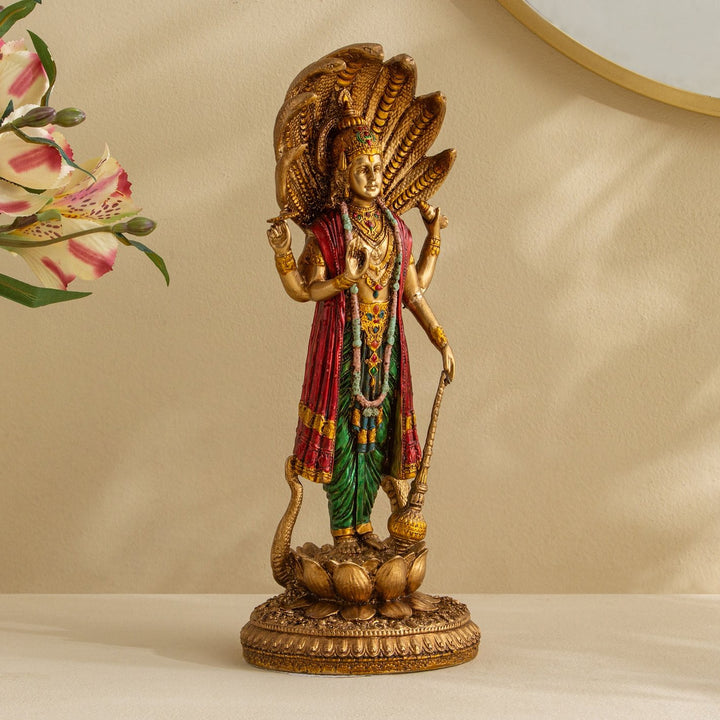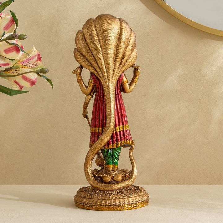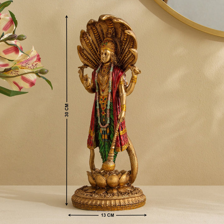 Premium Resin Lord Vishnu Statue with Sheshnag | Elegant Hindu God Idol for Home Temple, Office & Gifting | Antique Gold Finish Decorative Figurine