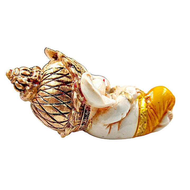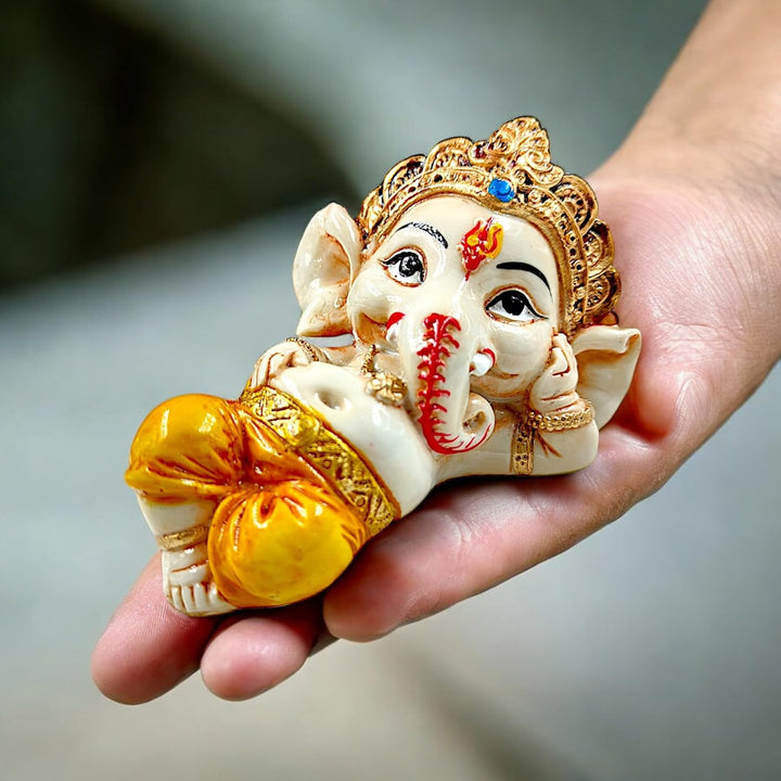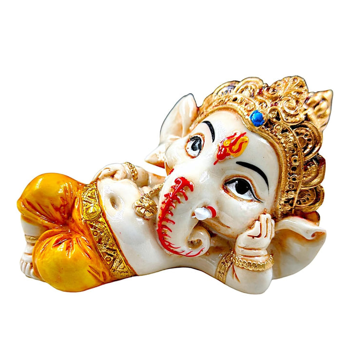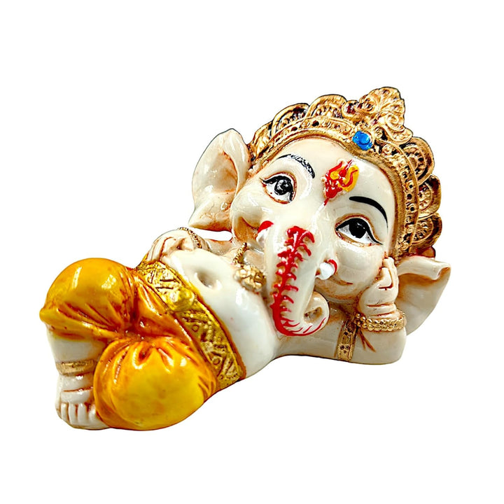 Reclining Ganesha Idol for Car & Home - Relaxed Resin Ganpati Statue for Blessings & Decor