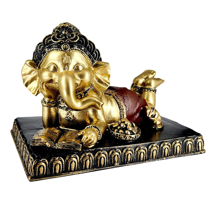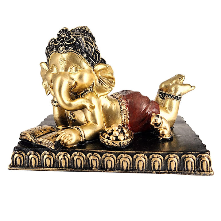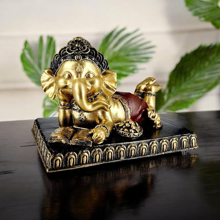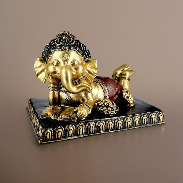 Reclining Ganesha Idol with Book β Resin Decorative Statue for Home, Study & Gifting