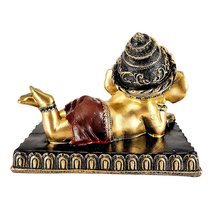 Short Description : Bring home the charm of wisdom and peace with this elegant reclining Ganesha idol, beautifully crafted in resin with gold and maroon tones. A symbol of knowledge, relaxation, and divine presence β perfect for gifting and serene spaces.