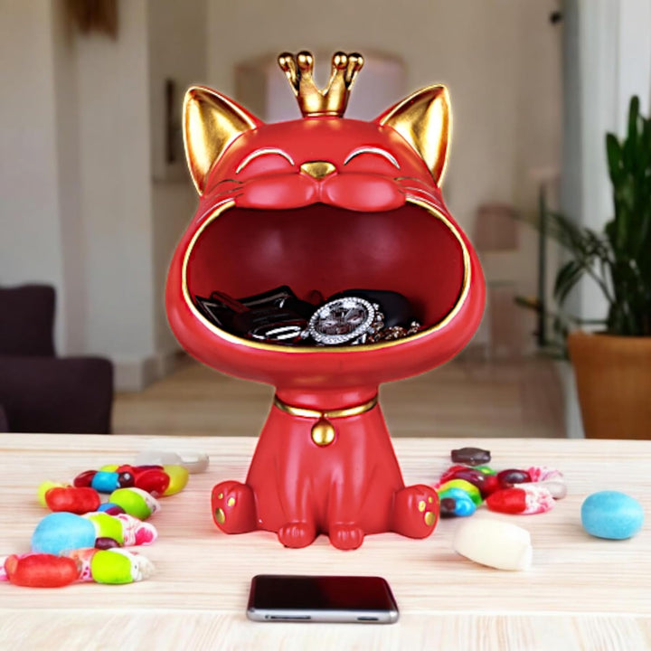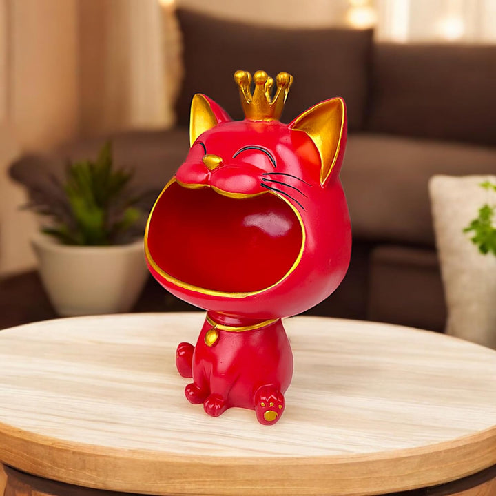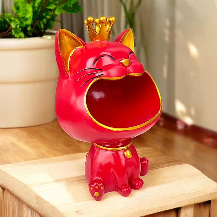 Red Resin Cat Figurine Stand for Home Décor – Elegant Cat Showpiece for Living Room, Office & Gifting