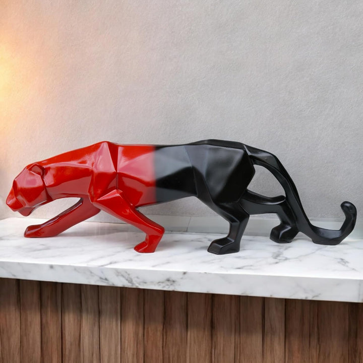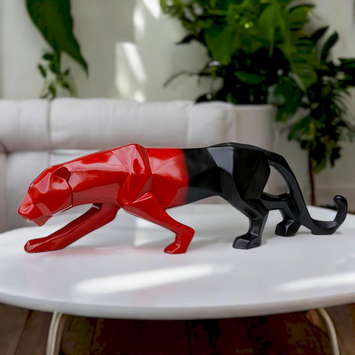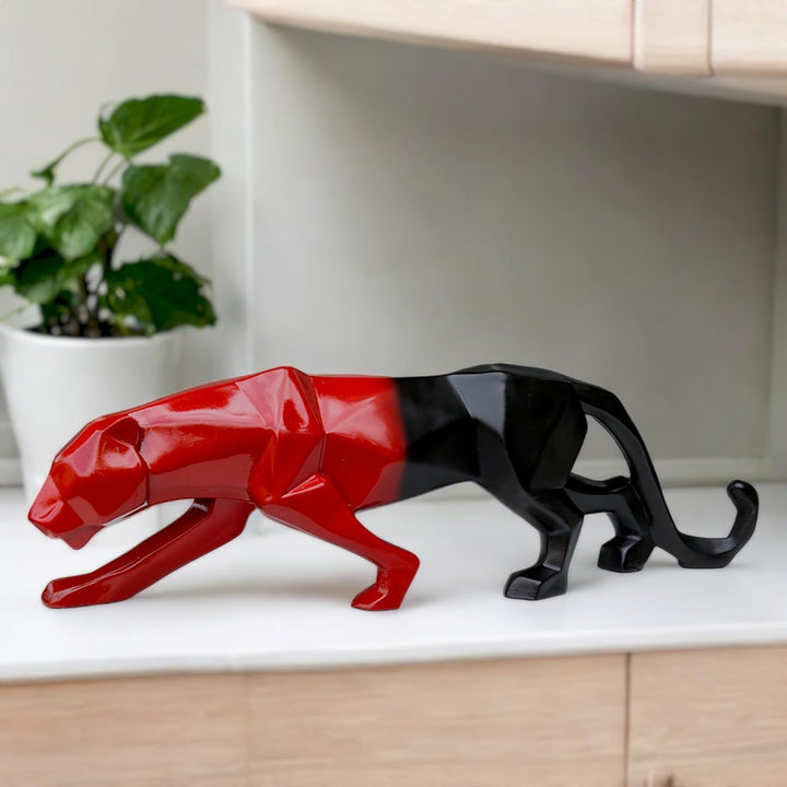 Resin Geometric Red & Black Leopard Figurine | Modern Panther Sculpture for Home & Office Decor | Luxury Wildlife Showpiece